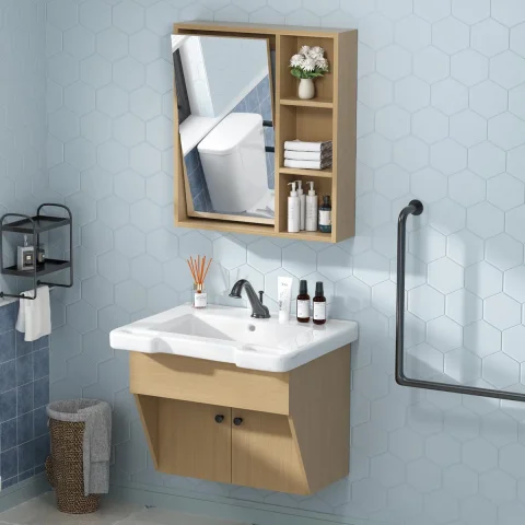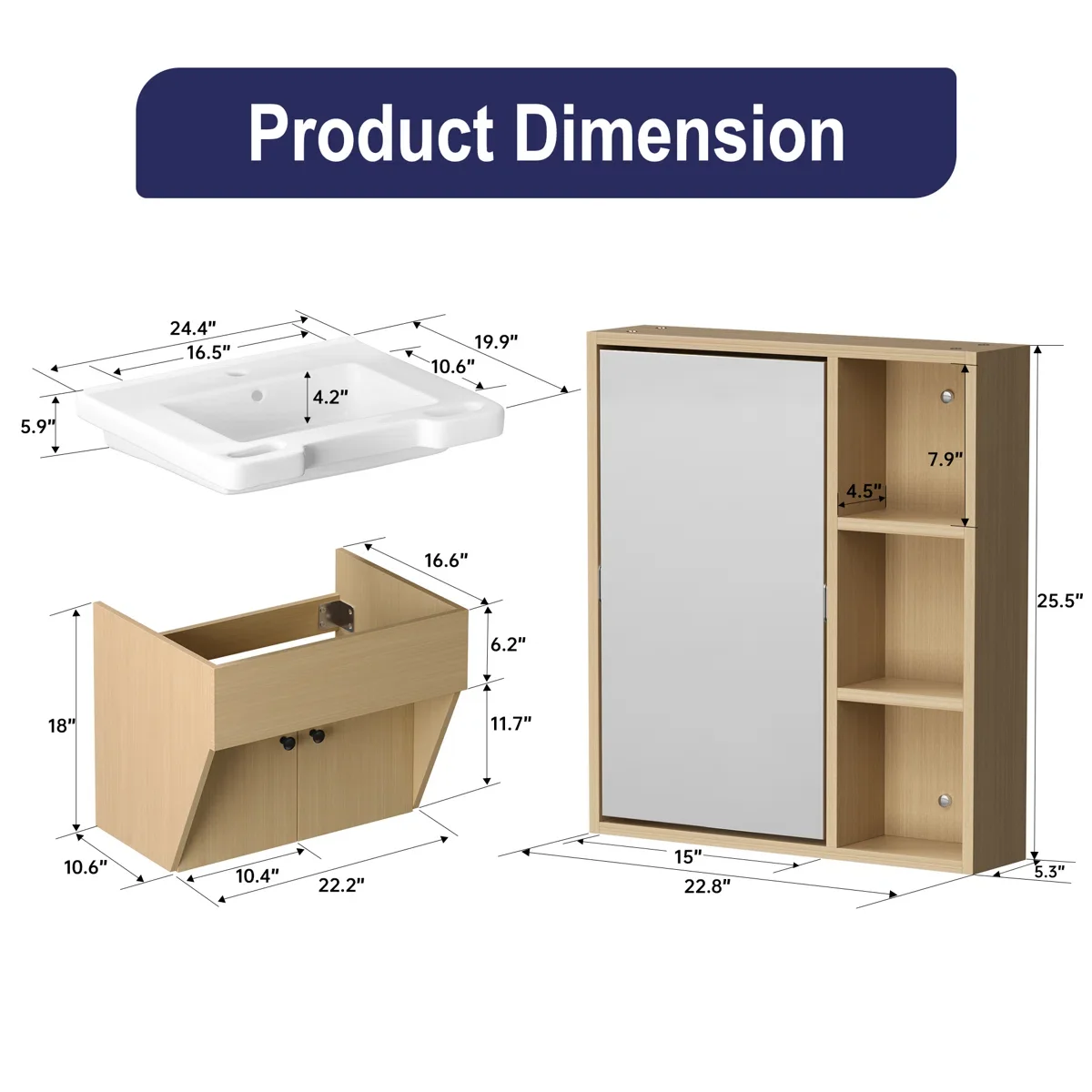 - Adjustable Mirror Cabinet: The included mirror cabinet is designed with adjustable tilt functionality, perfect for enhancing the usability of this 24" wall mounted vanity.