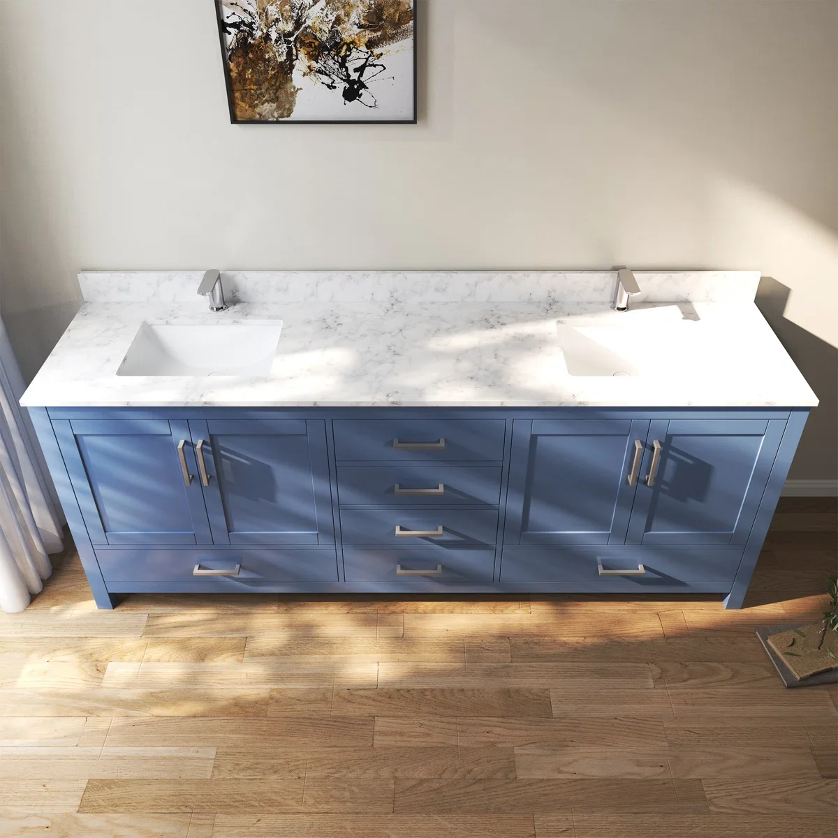 Elevate your bathroom’s aesthetic with our 84'' double Bathroom Vanity featuring a sleek White Galaxy Granite top and an elegant ceramic sink. This vanity set offers plenty of storage space for your guest bathroom or a half bath. This stylish vanity combines functionality and modern design, making it the perfect addition to any contemporary bathroom. Crafted with high-quality materials, it offers ample storage space while ensuring durability and easy maintenance. You have enough place for cleaning supplies and other toiletries. Transform your space into a sanctuary of style and comfort with this stunning vanity. Built with high-quality, naturally water-resistant and durable materials, this piece is ideal for humid environments. With simple assembly instructions included, installation is a breeze. Plus, we love that this vanity set comes with non-assembed design which you do not need to take time to install it. Just take the top on the vanity base. A extra backsplash are included in the package.