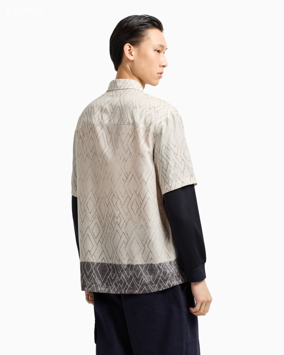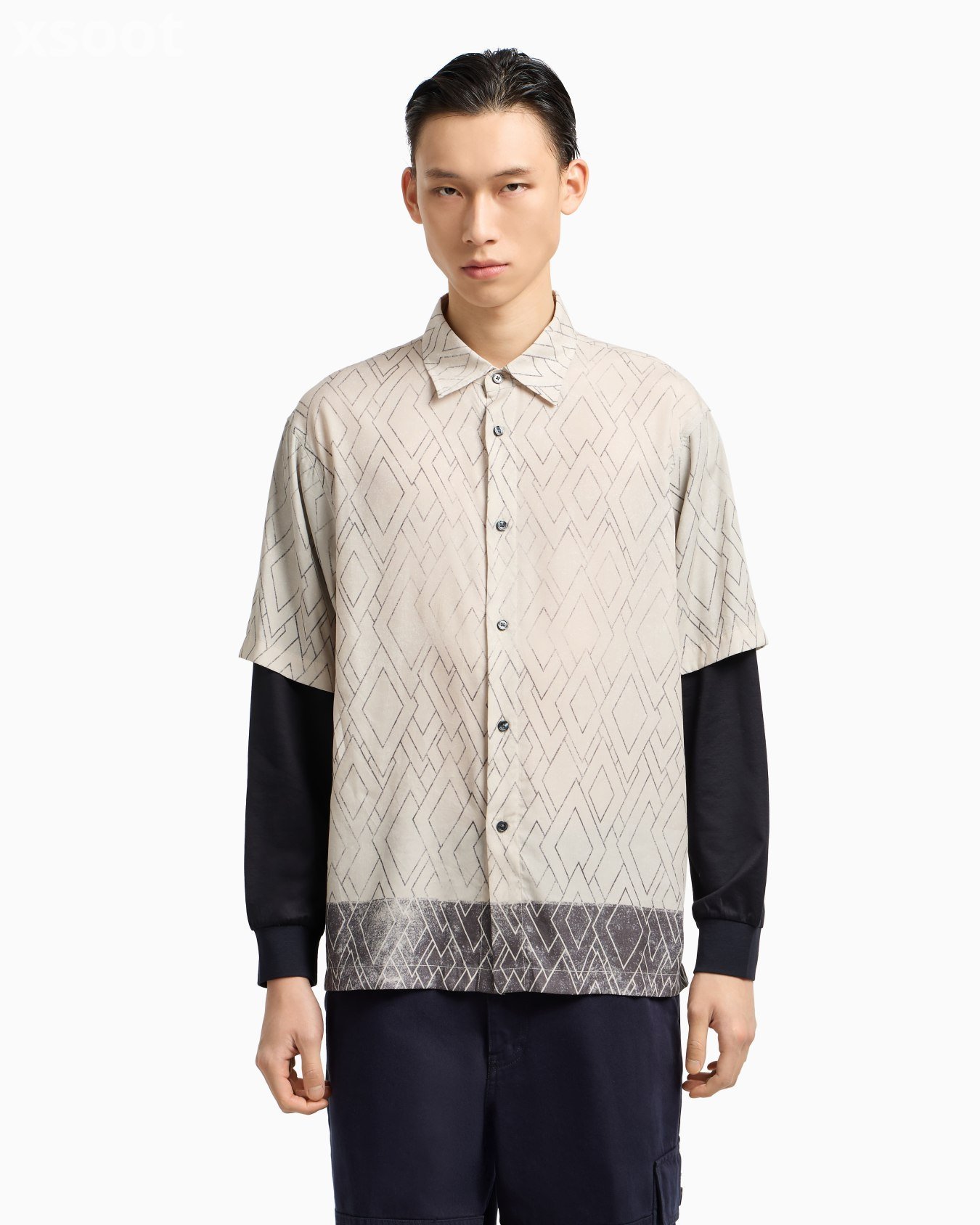 Comfort-fit, two-piece design featuring a short-sleeved printed shirt fixed to long sleeves in solid-colour jersey. The shirt is made in a Lyocell blend. Lyocell is a semi-synthetic fibre that has an exceptionally low impact on the environment: it is produced from eucalyptus trees and is valued for its excellent durability, breathability, absorbency and wrinkle-resistance.