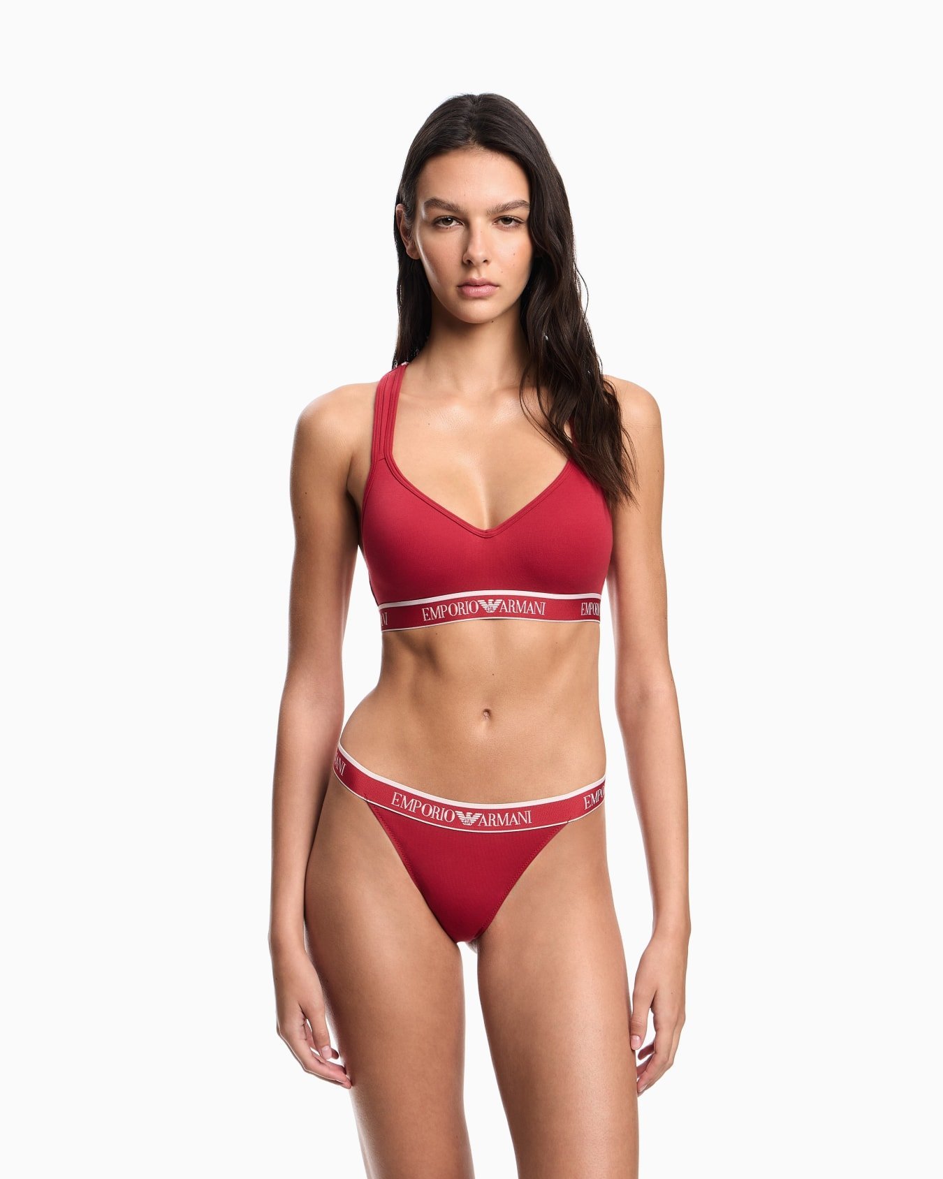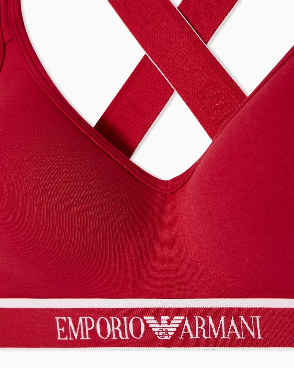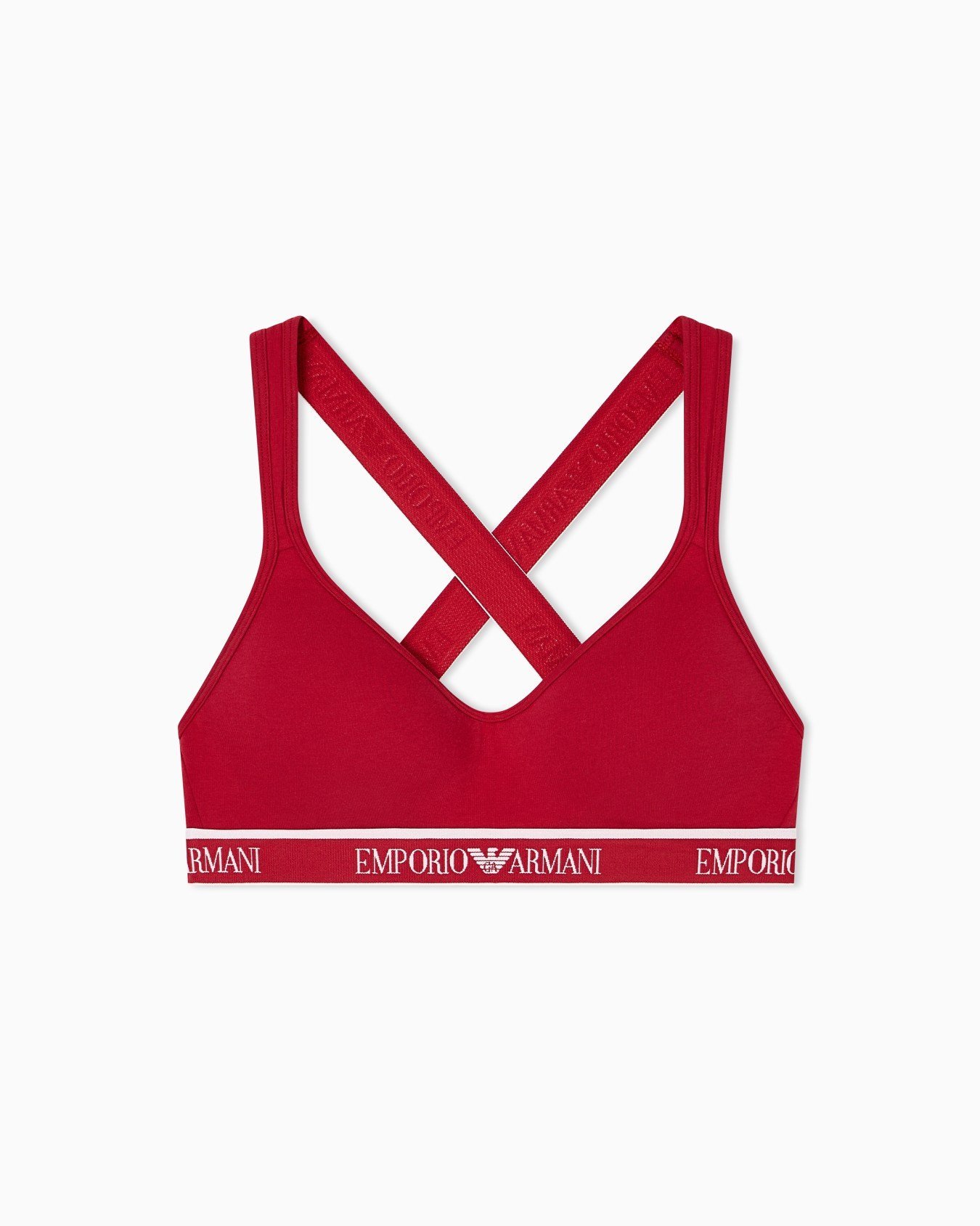 Padded bralette with elasticated logo trim and crossover logo shoulder straps at the back. The fabric is an organic cotton made from organically grown fibres.