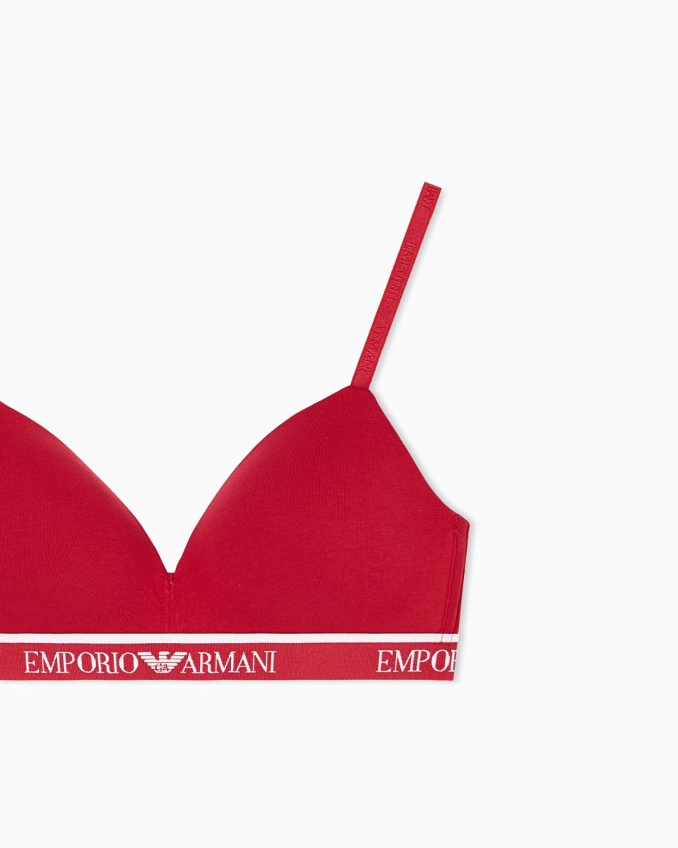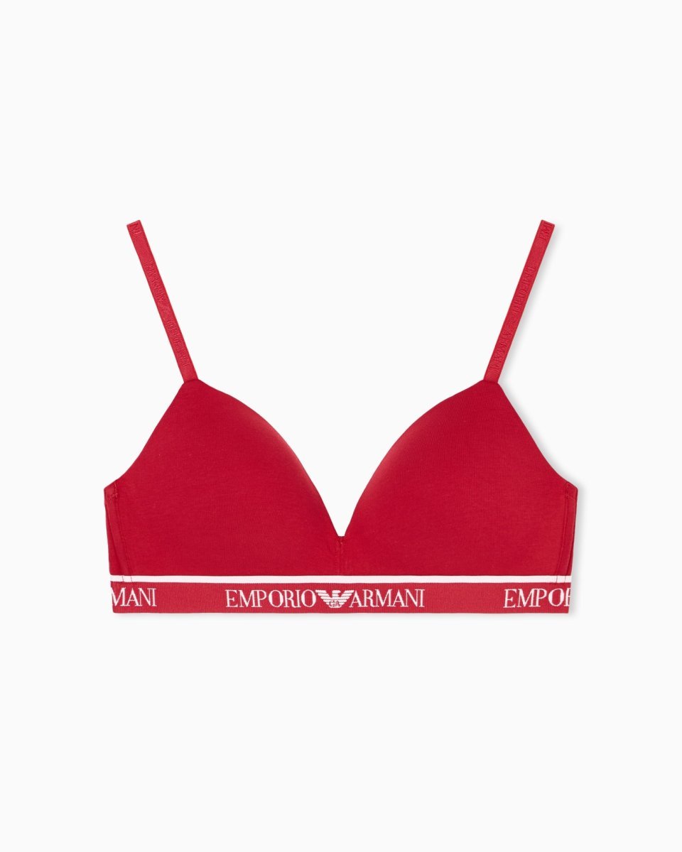 Triangle bra with adjustable shoulder straps and elasticated logo trim. The fabric is an organic cotton made from organically grown fibres.