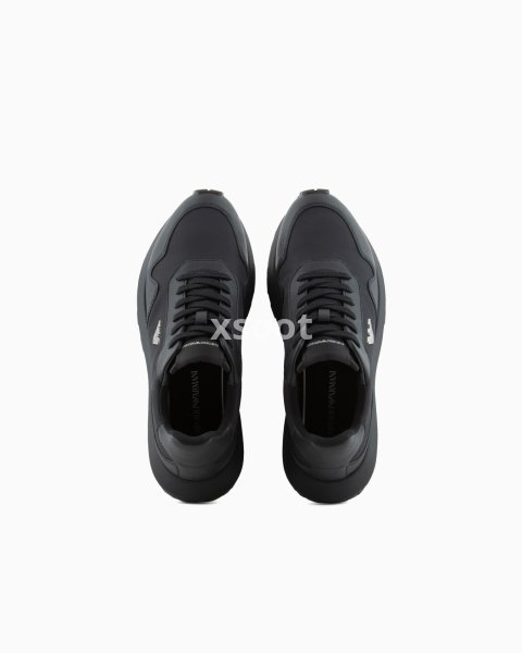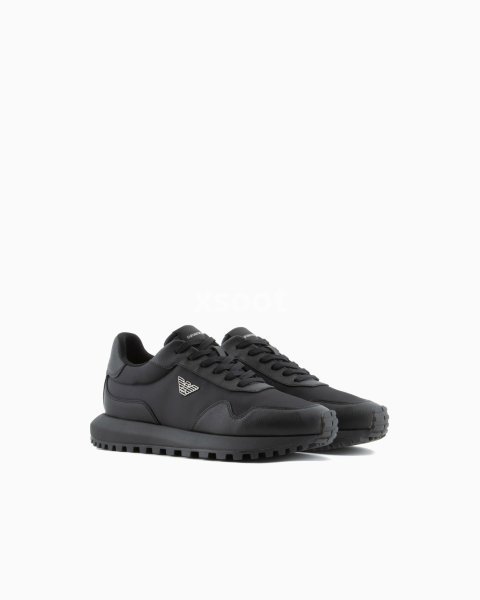 Sneakers made from recycled nylon with regenerated leather details and exclusive Saffiano embossing. The moulded metal plaque on the iconic eagle fixed on the side distinguishes the style. The customised running shoe sole is made of recycled EVA with non-slip tread. Thanks to an expert mix of materials, these multi-textured sneakers have a bold, modern personality. Inspired entirely by heritage running, this item adds laid-back allure to classic looks.