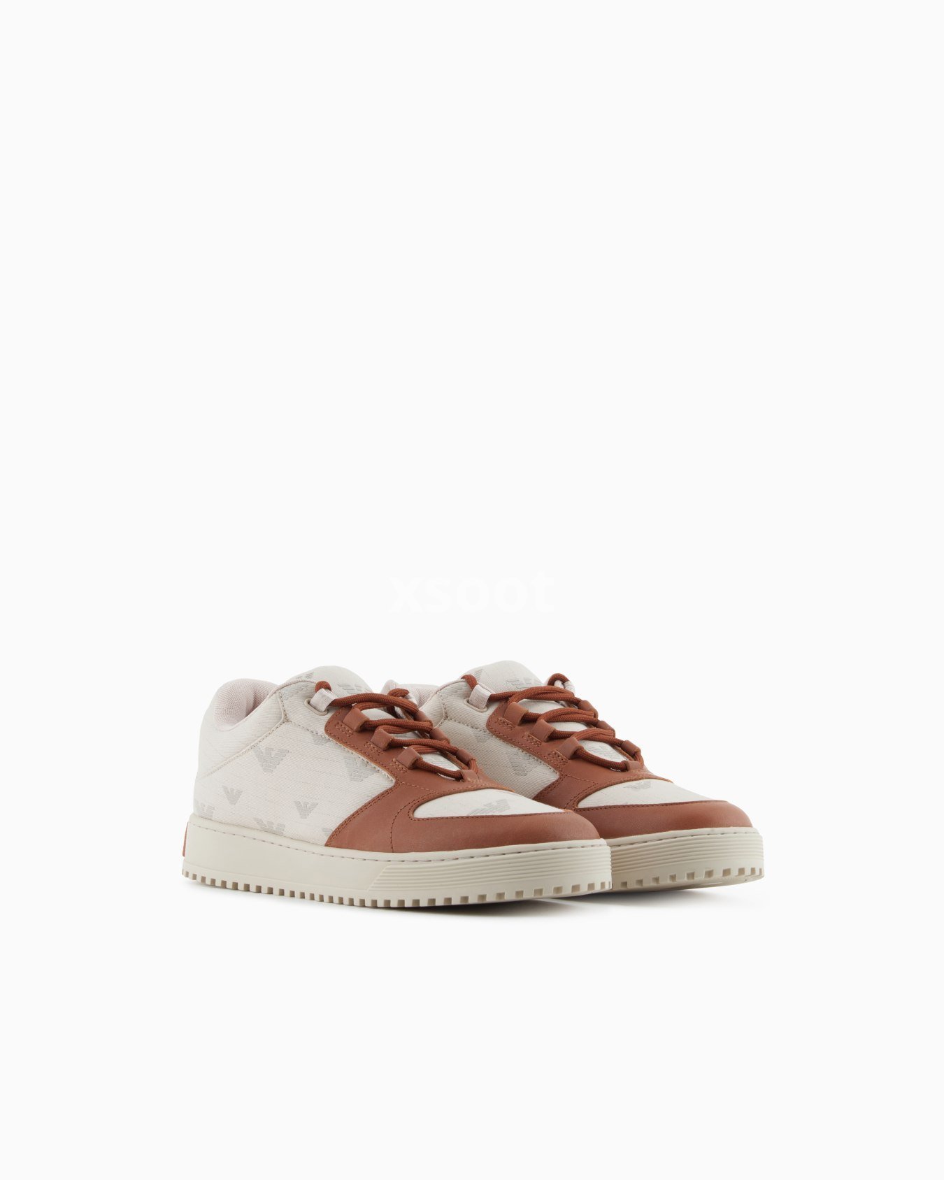 Sneakers in bright-coloured ripstop canvas, embellished with leather details that add artisanal accents to an offering with a fresh and fun allure, and a notched tread. Emporio Armani interprets the skating world of the late 1990s, offering uppers with padding on the collar and ankle, without ever losing sight of the brand’s signature clean, minimalist lines.