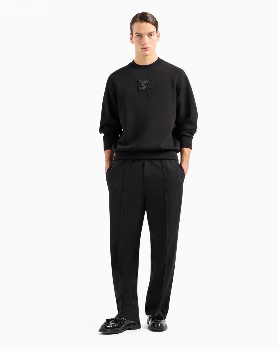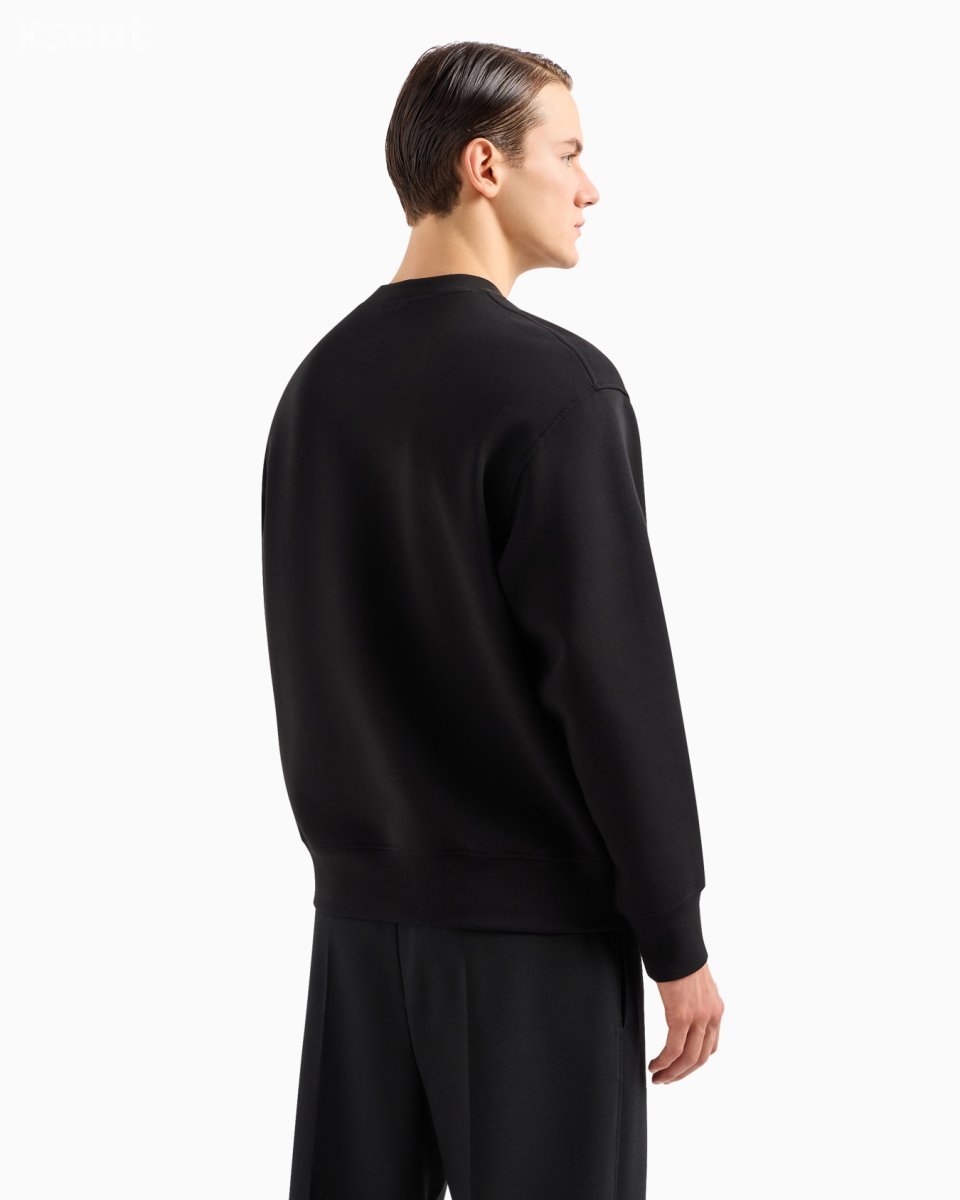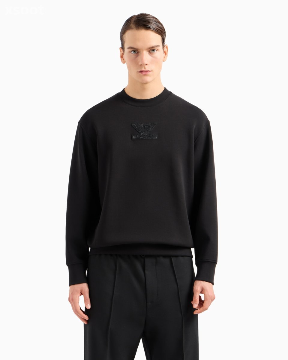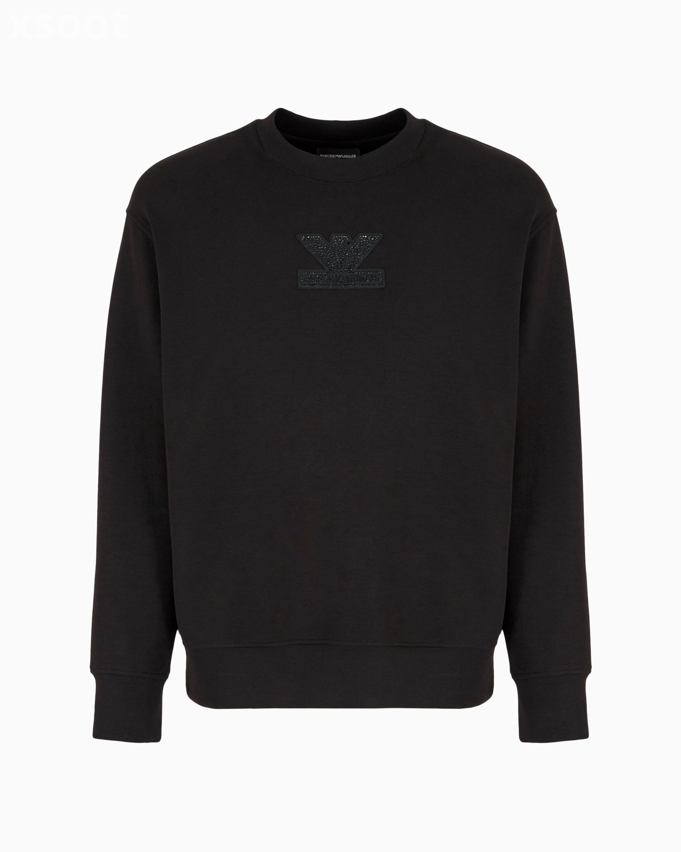 Crew-neck sweatshirt made from cotton-blend double jersey and embellished with a contoured logo patch encrusted with tonal rhinestones. This item belongs to the new Clubwear capsule collection, a selection of casual styles made special and luminous, designed as eveningwear for events, parties or nights at the club. The palette is entirely black, embellished with sparkling details and matching rhinestones that give a vibrant, glistening allure.