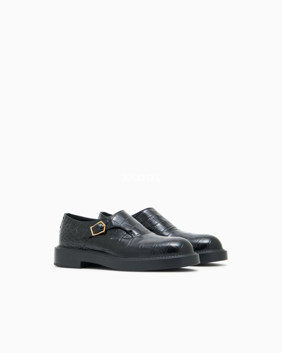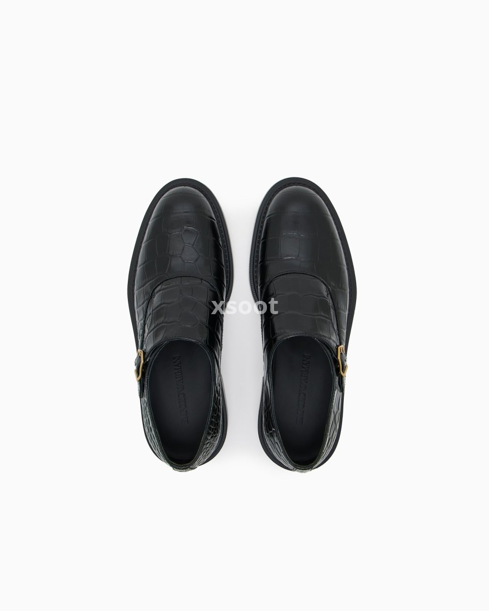 Monkstraps in crocodile-print calfskin with a welt. An elegant evening piece with a modern twist. Versatile footwear suitable for different occasions when you are seeking class and originality.