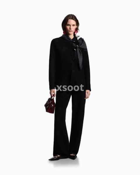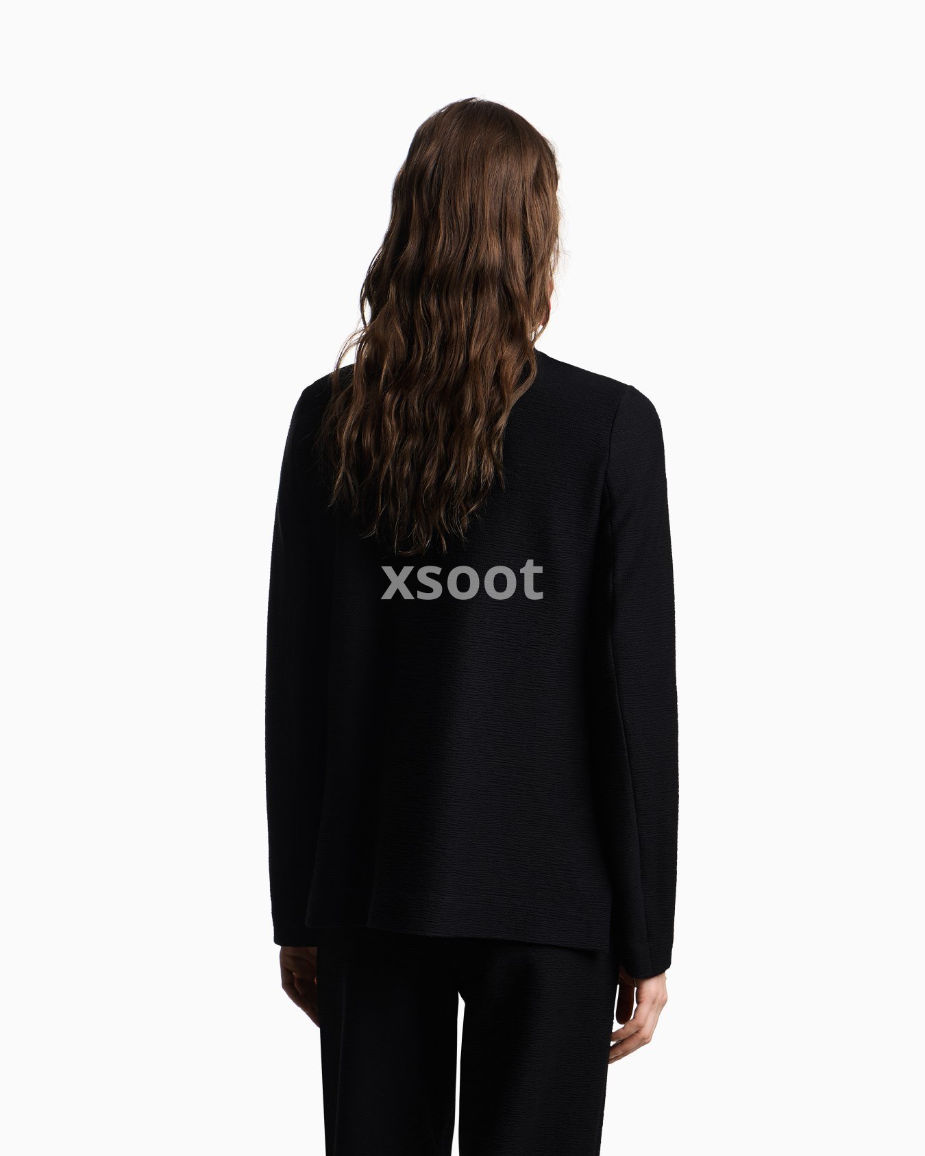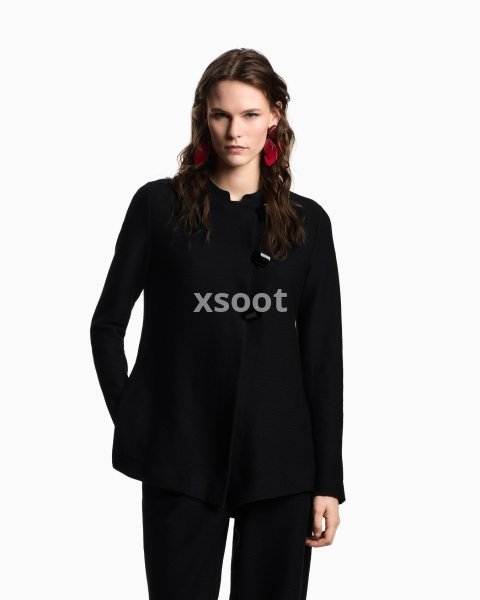 Jacket with off-centre closure and cylindrical buttons, made of textured jersey. The fabric is distinguished by a unique embossed, three-dimensional construction that bestows refinement and texture on the style. A refined, sophisticated, enveloping piece, overflowing with elegance; the full embodiment of Emporio Armani style.