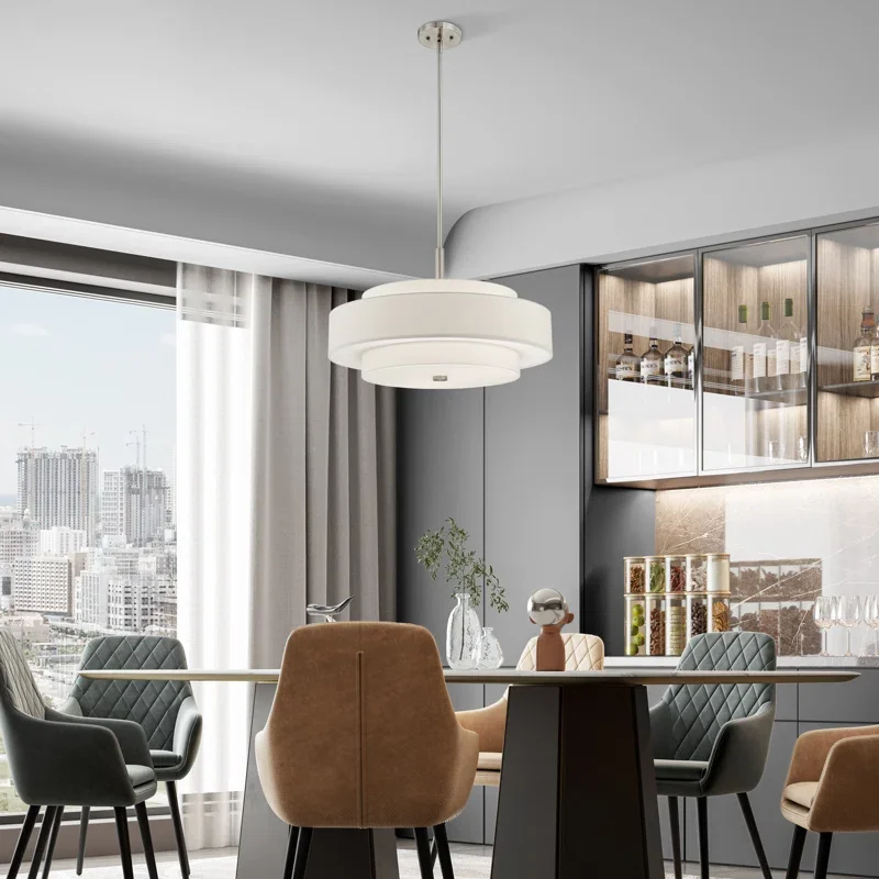 Illuminate your entryway or dining room in a streamlined style with this chandelier. This fixture is crafted from hand-forged steel and features a fabric drum shade. We love that its sleek, contemporary shape makes this piece fit in with décor styles from modern to minimalist. Plus, it's safe to install in damp areas like above your bathtub. This chandelier has an adjustable height and is compatible with sloped ceilings to suit your space.