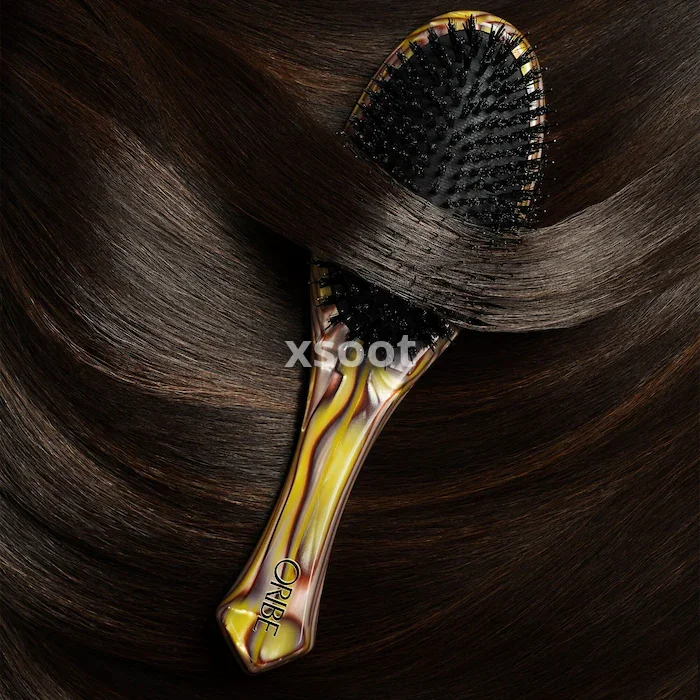- Combines boar bristles and rounded nylon pins with a 97 percent-natural rubber cushion to delicately stimulate the scalp and polish hair—for an ultra-sleek, shiny finish