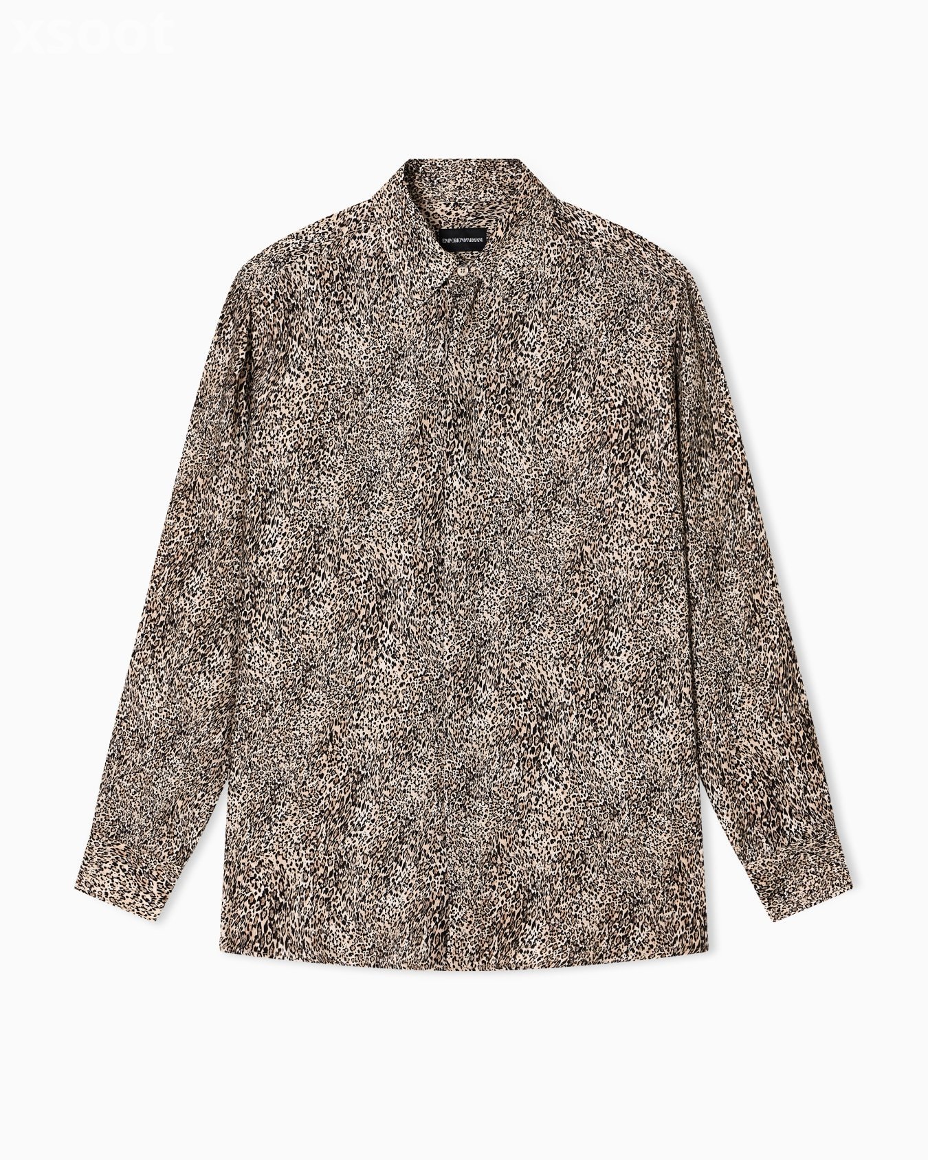 Concealed-button shirt made of flowing fabric in a wool and viscose blend featuring an animal print. Animal print patterns and details add extra character to the collection’s clothing: stylish elements, distinctive of the man who dares, that elevate his look with a hint of sensuality.