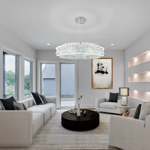 Illuminate your living space with this unique circular LED chandelier, a standout piece in your home decor. Whether in a modern home or a traditional setting, it seamlessly fits in, adding a touch of distinctive brilliance to your home. Choose this chandelier for your home now and enjoy the visual feast it brings!