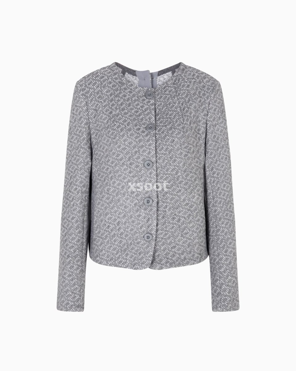 Single-breasted, crew-neck jacket made of a jacquard knit. The tricot-effect weave embellished with a distinctive micro-pattern is the distinctive feature of this style making it unique and sophisticated. The garment is part of the Icon capsule collection.