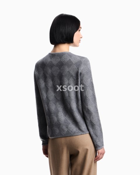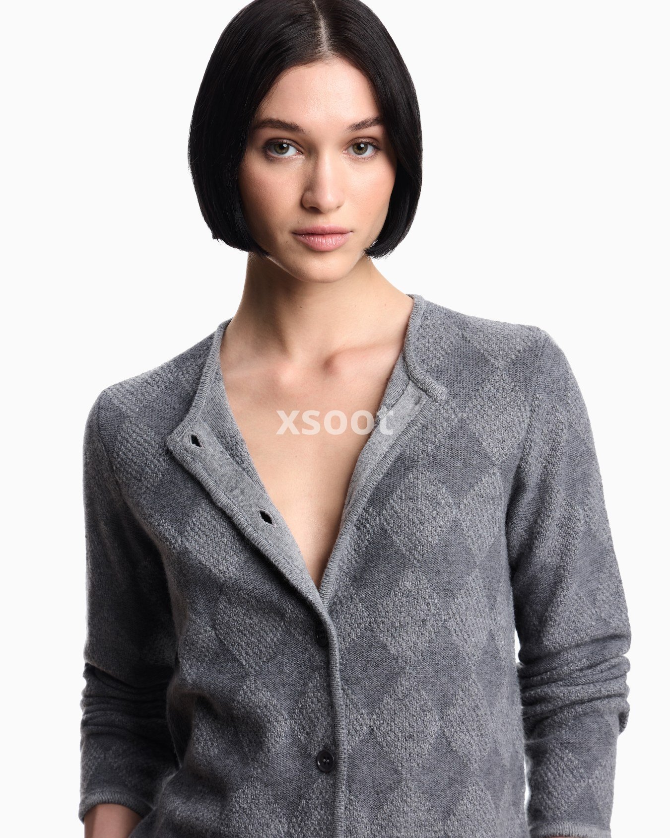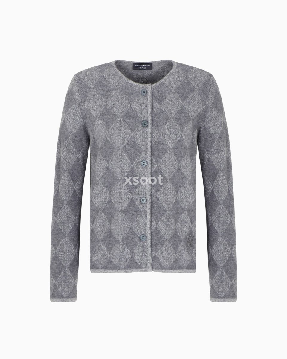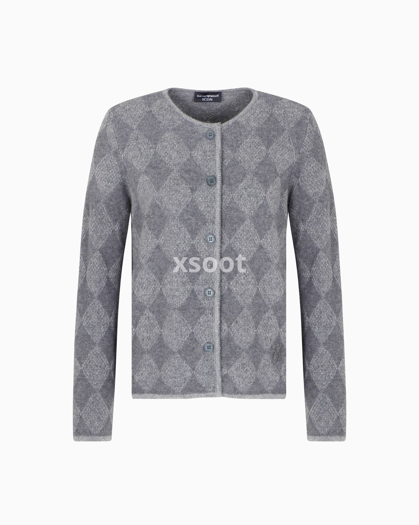 Cardigan made from a wool and cashmere blend, embellished with a plated diamond motif that distinguishes the style. The garment is part of the Icon capsule collection.