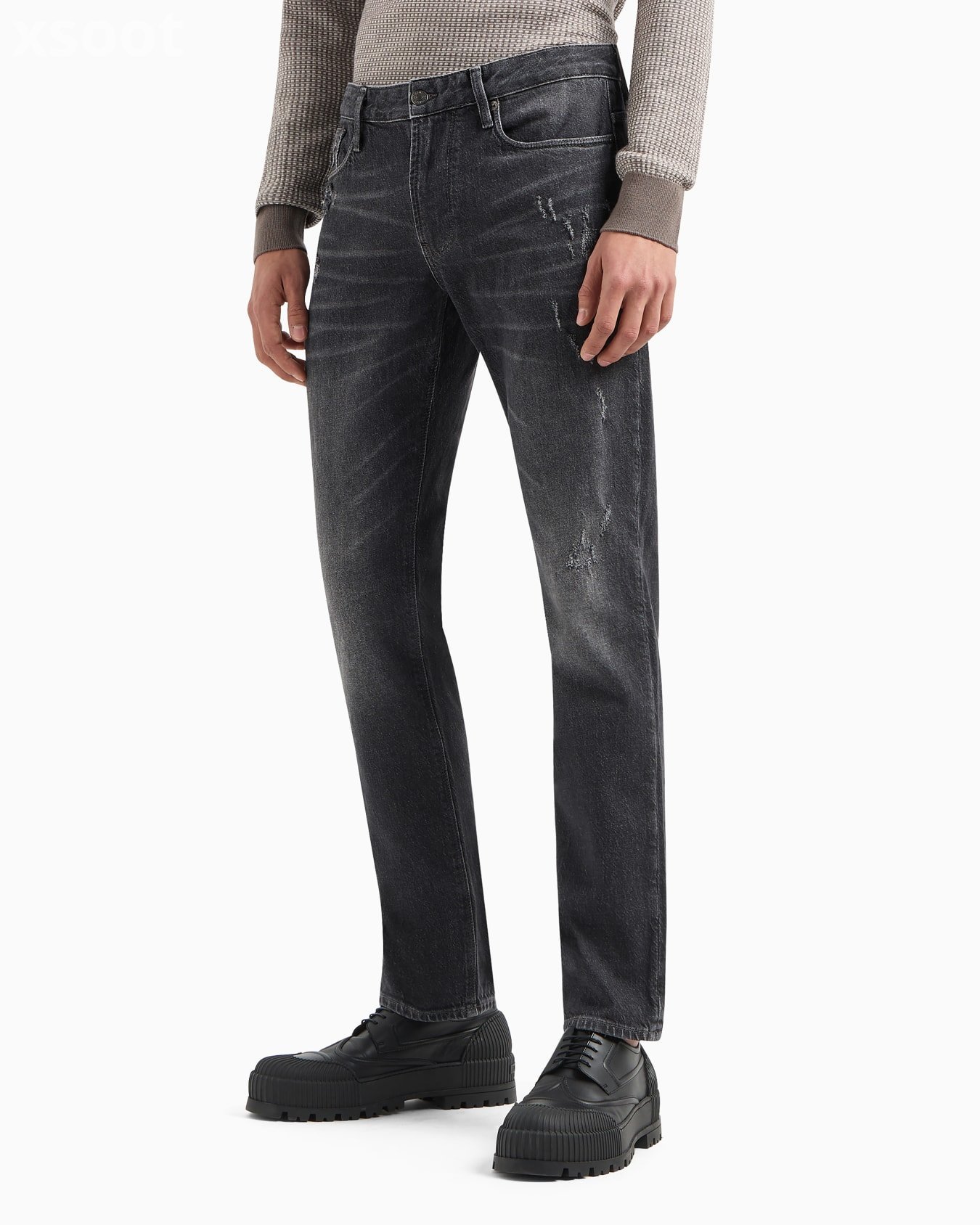 This style of stretch cotton denim jeans features a wash that gives them a vintage appearance. Narrow leg, low waist, regular crotch and zip fastening. Slim fit.