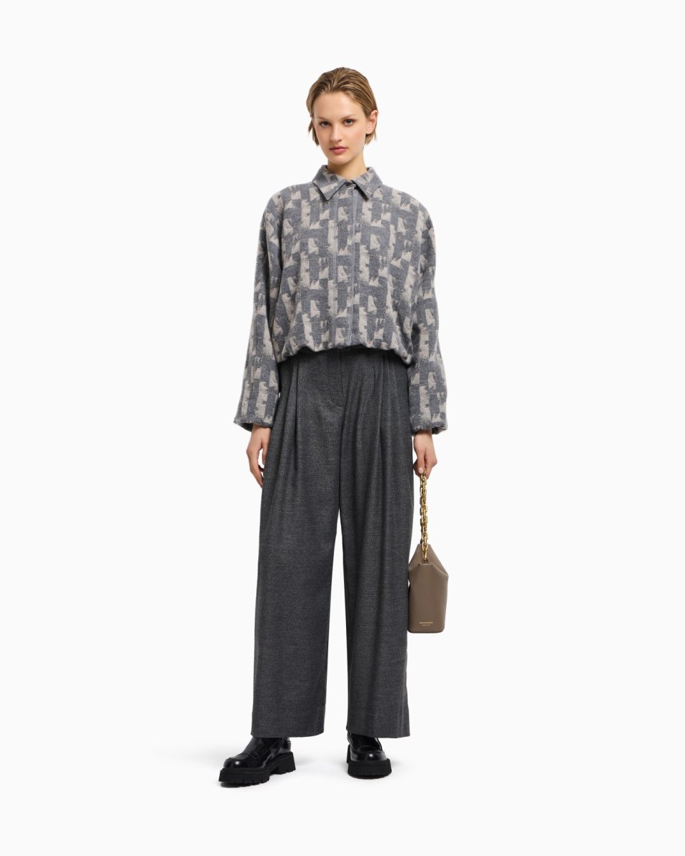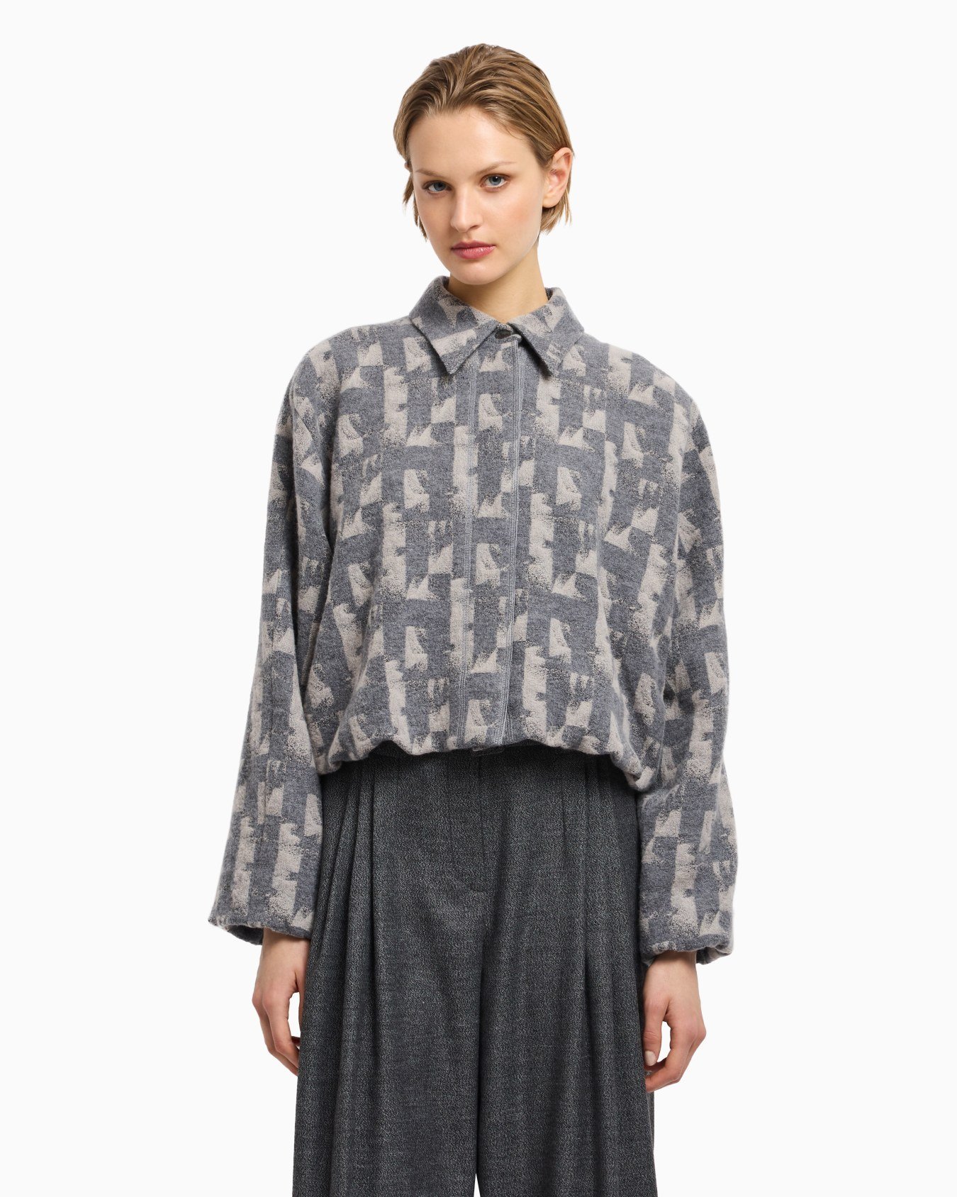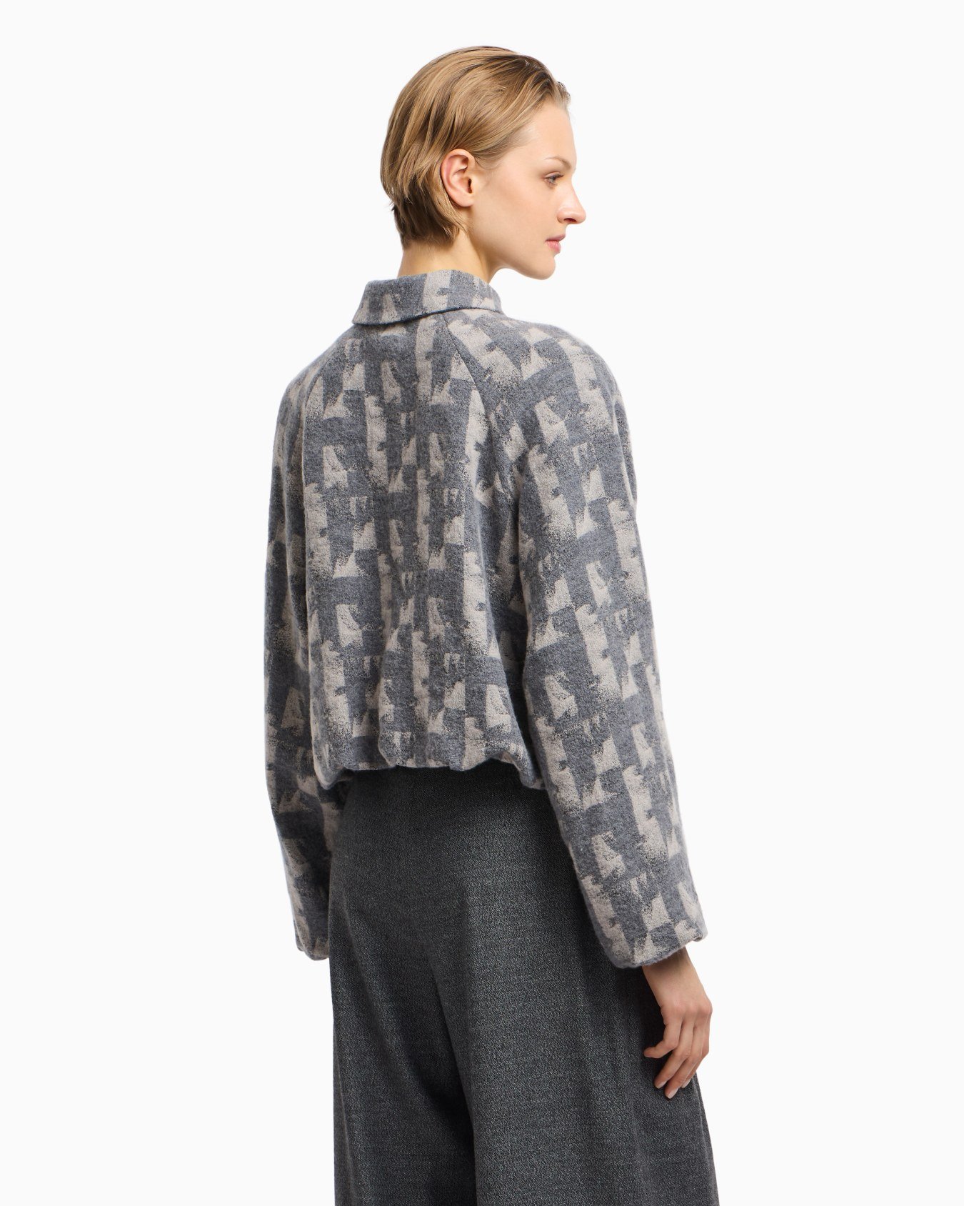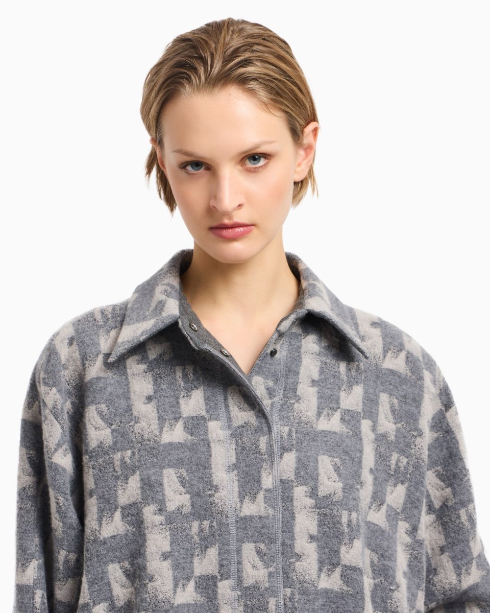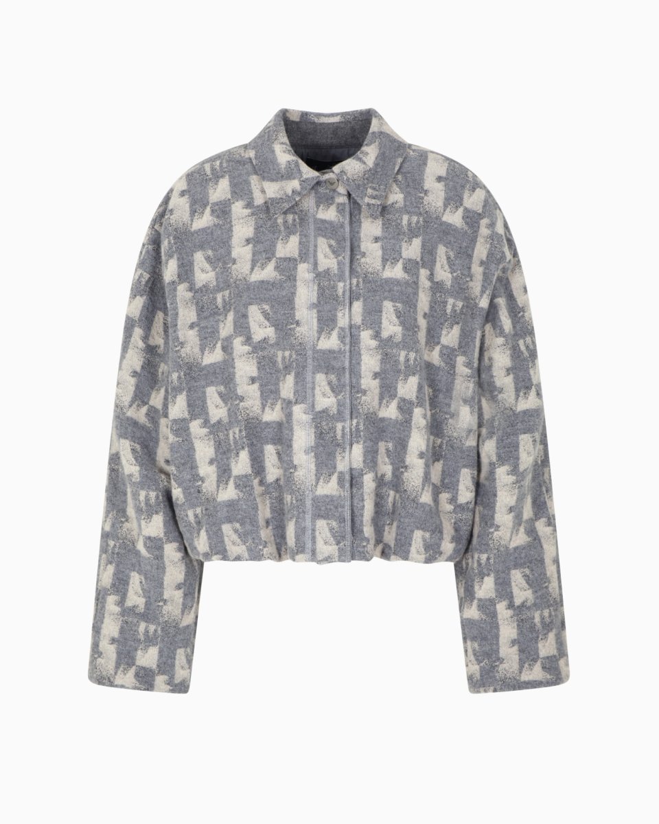 Blouson with a classic collar and press-stud closure, made of a virgin-wool blend. The style features an all-over irregular geometric motif created by the jacquard. A perfect garment for each of your daily activities, with all the Emporio Armani style.