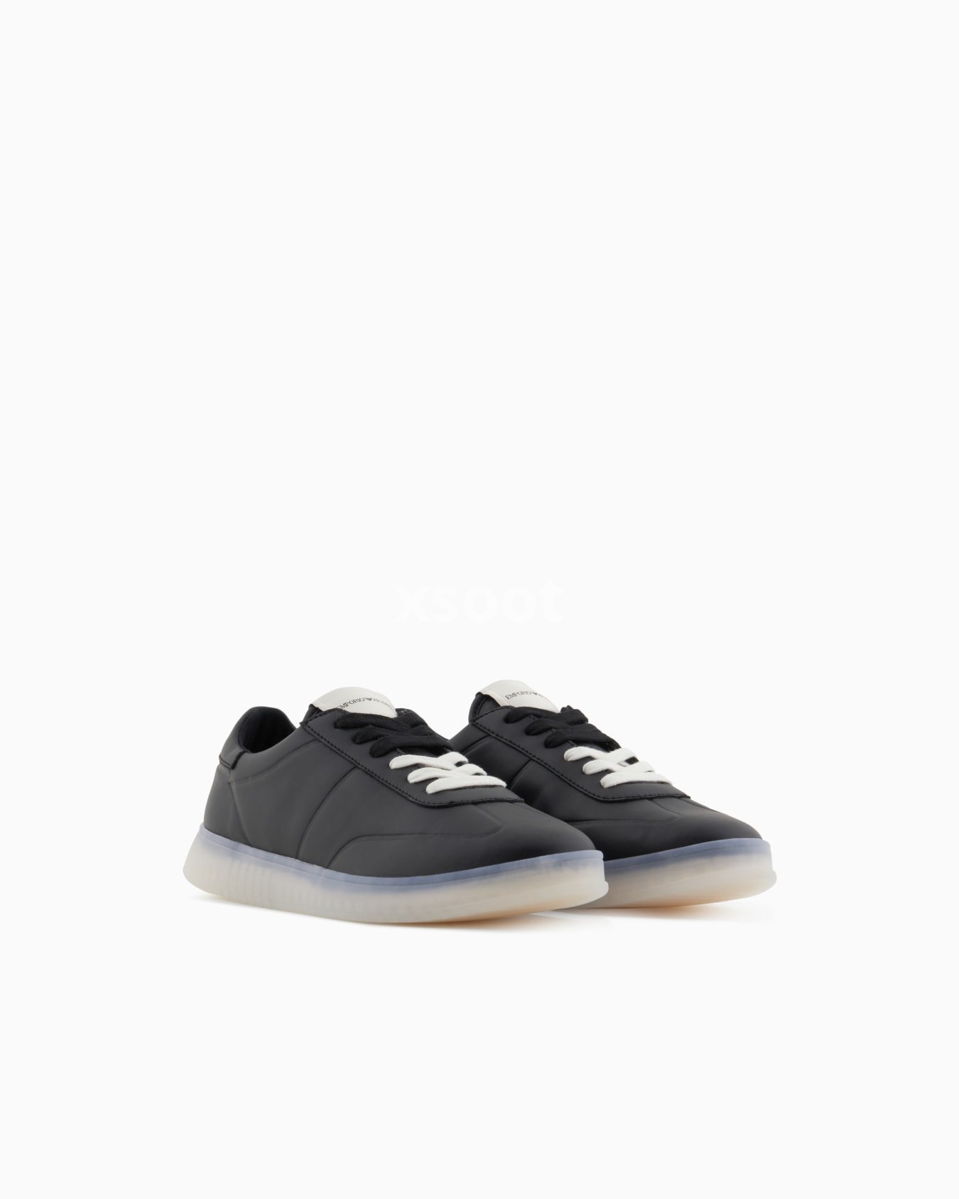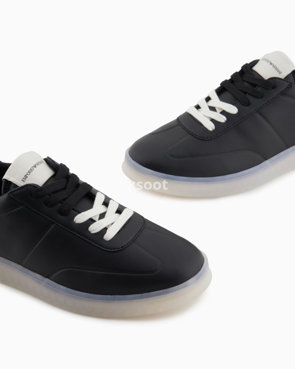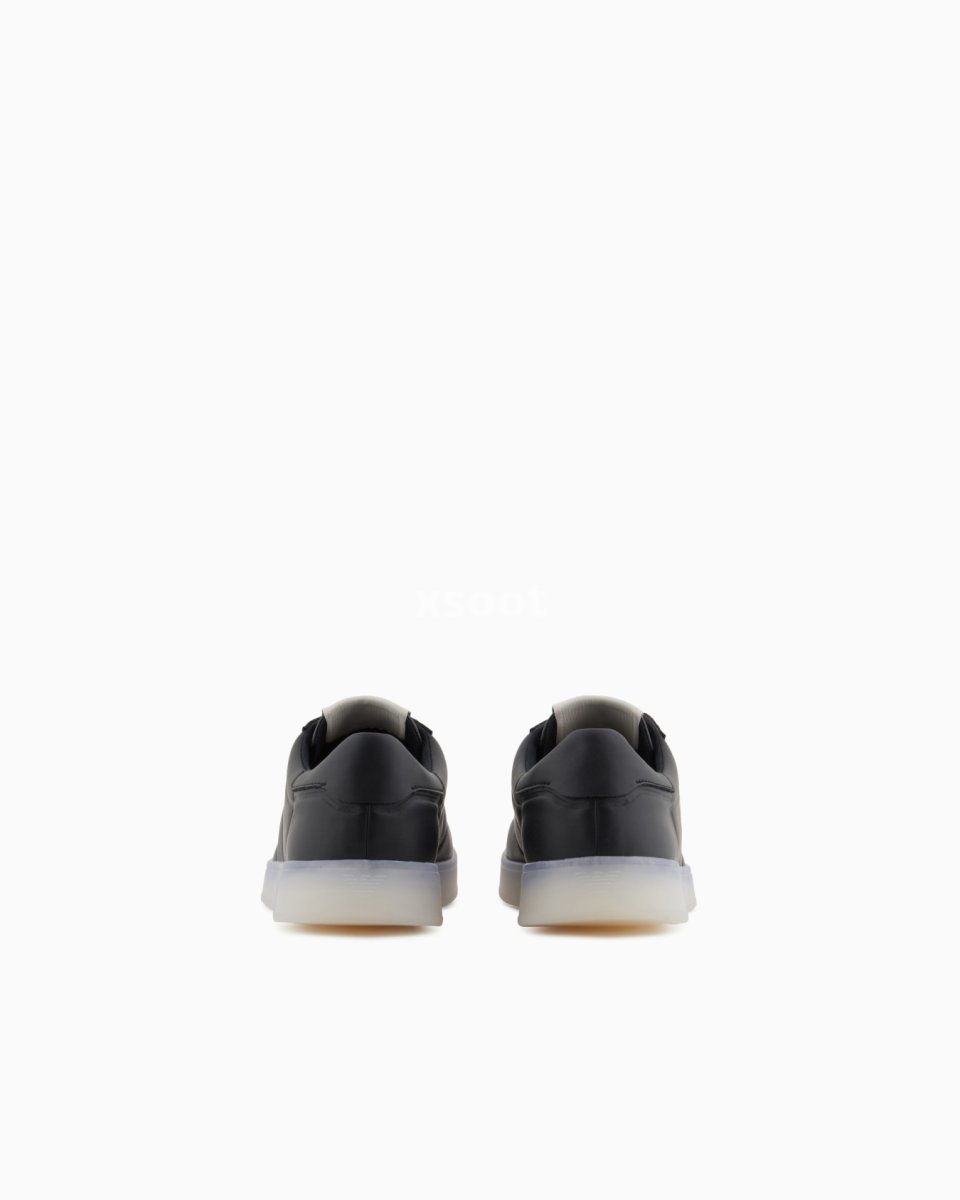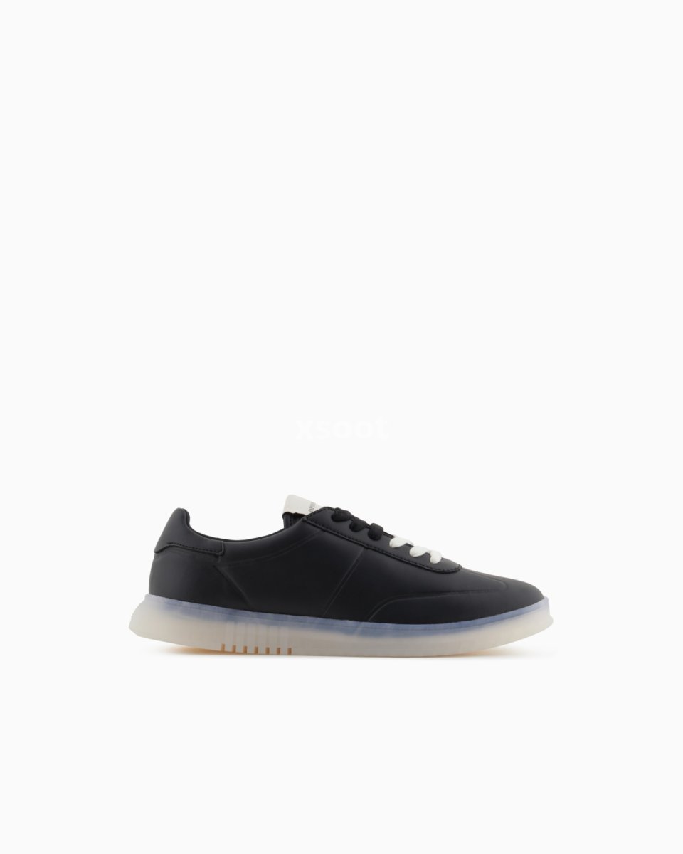 Leather sneakers with high frequency details. A minimalist style, featuring a sleek, modern silhouette and semi-transparent sole: versatile sneakers suitable for multiple occasions.