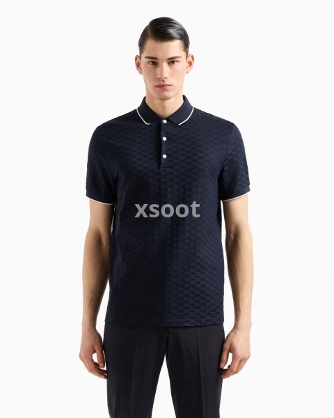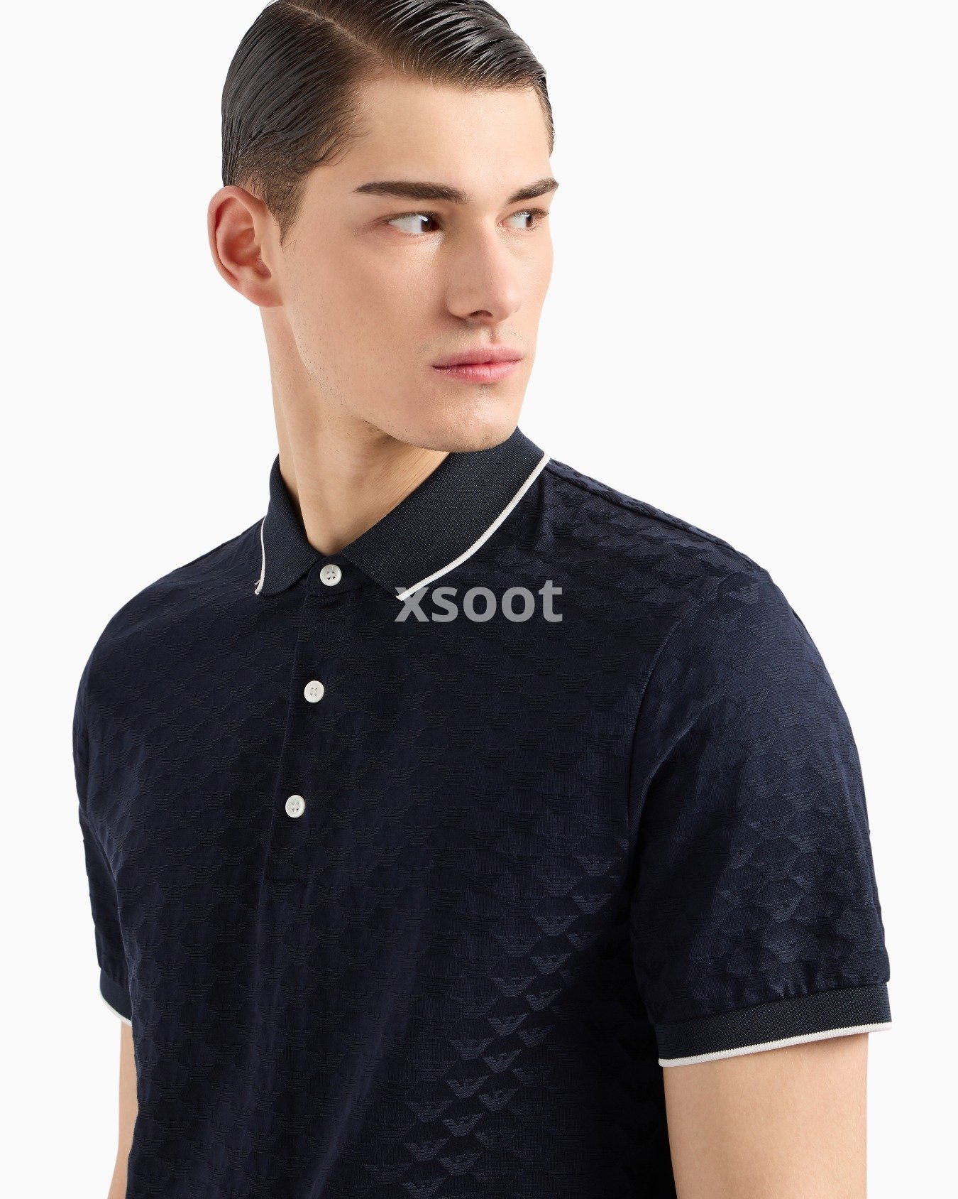 Men’s polo shirt made from high-quality, mercerised cotton for added sheen, durability and breathability. Iconic matching all-over jacquard eagle. This item belongs to the Essentials clothing selection, the Emporio Armani capsule collection that is an evergreen statement of style: an ongoing collection with clean, well-designed shapes for a wardrobe that meets the demands of any season. These “essential”, versatile pieces are a must-have for the male wardrobe.