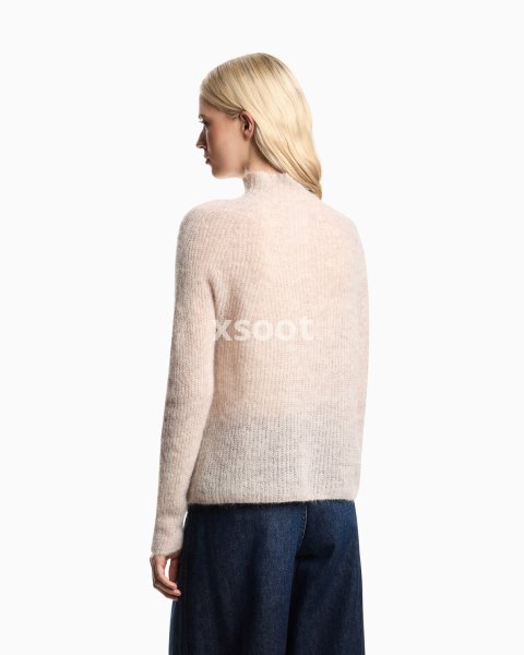Mock-neck jumper made from a cosy alpaca wool blend in a half fisherman’s rib. A warm and enveloping piece that, thanks to the alpaca wool, has a cosy fur feel.