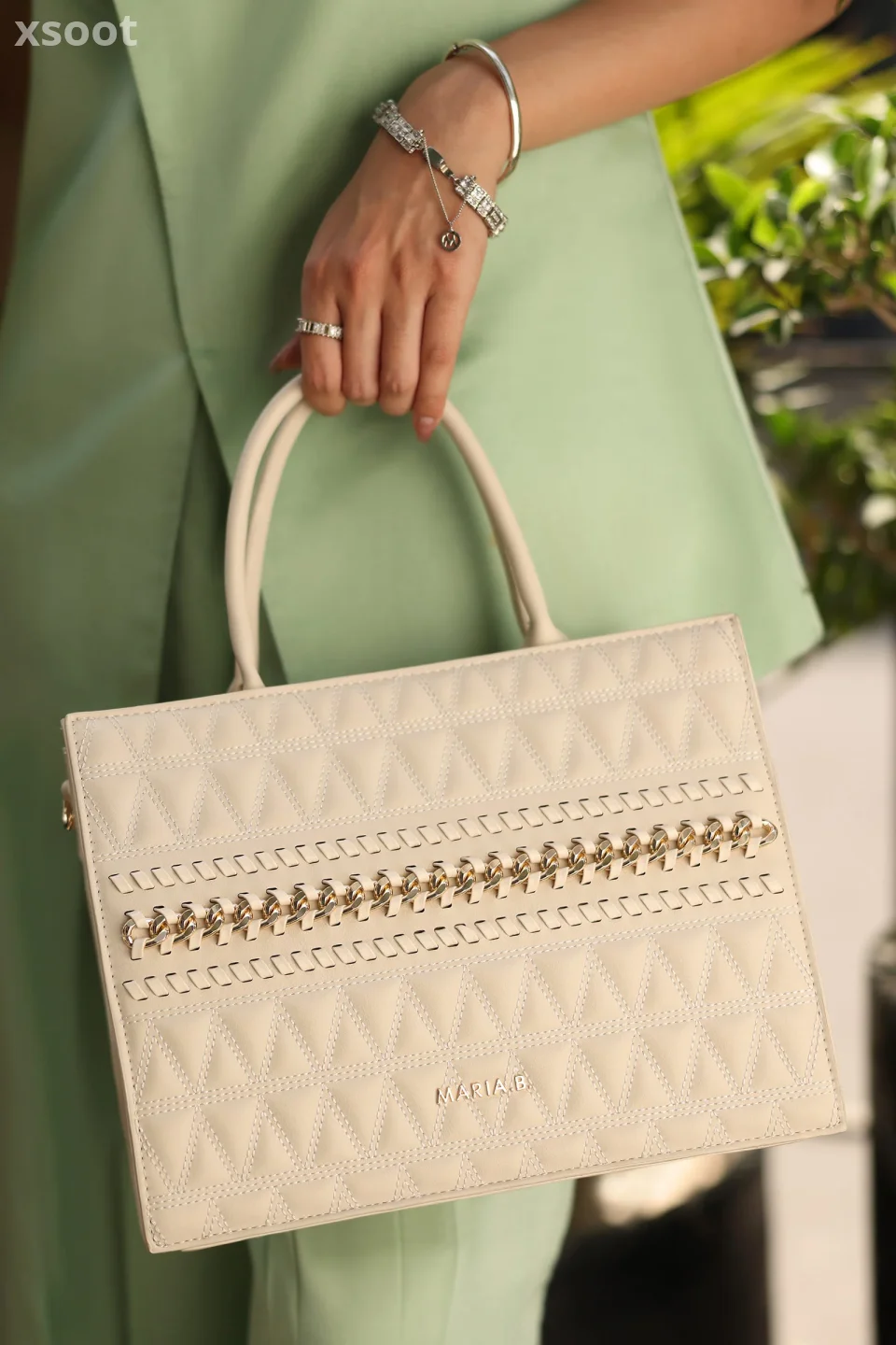Quilted Leather Exterior With Braided Chain & Thread Detailing