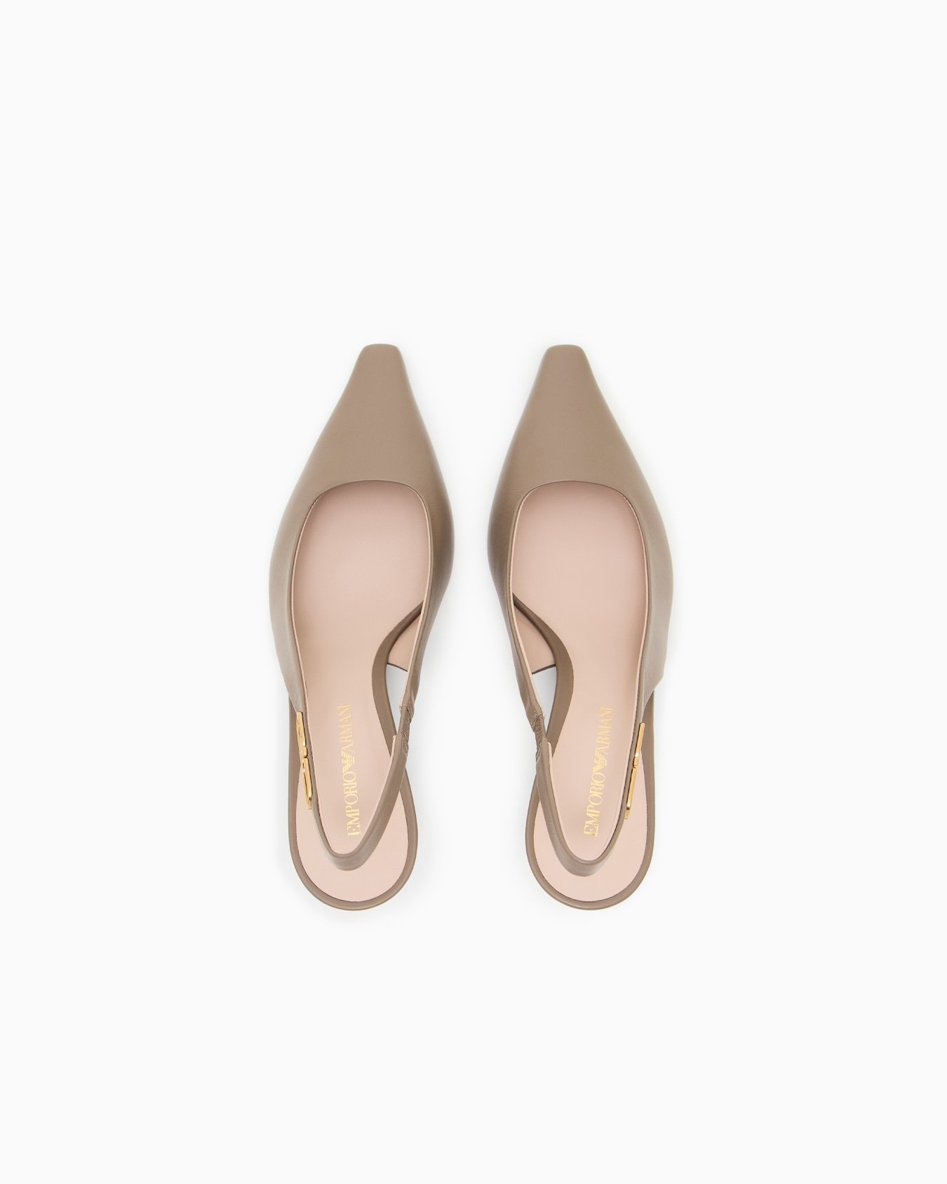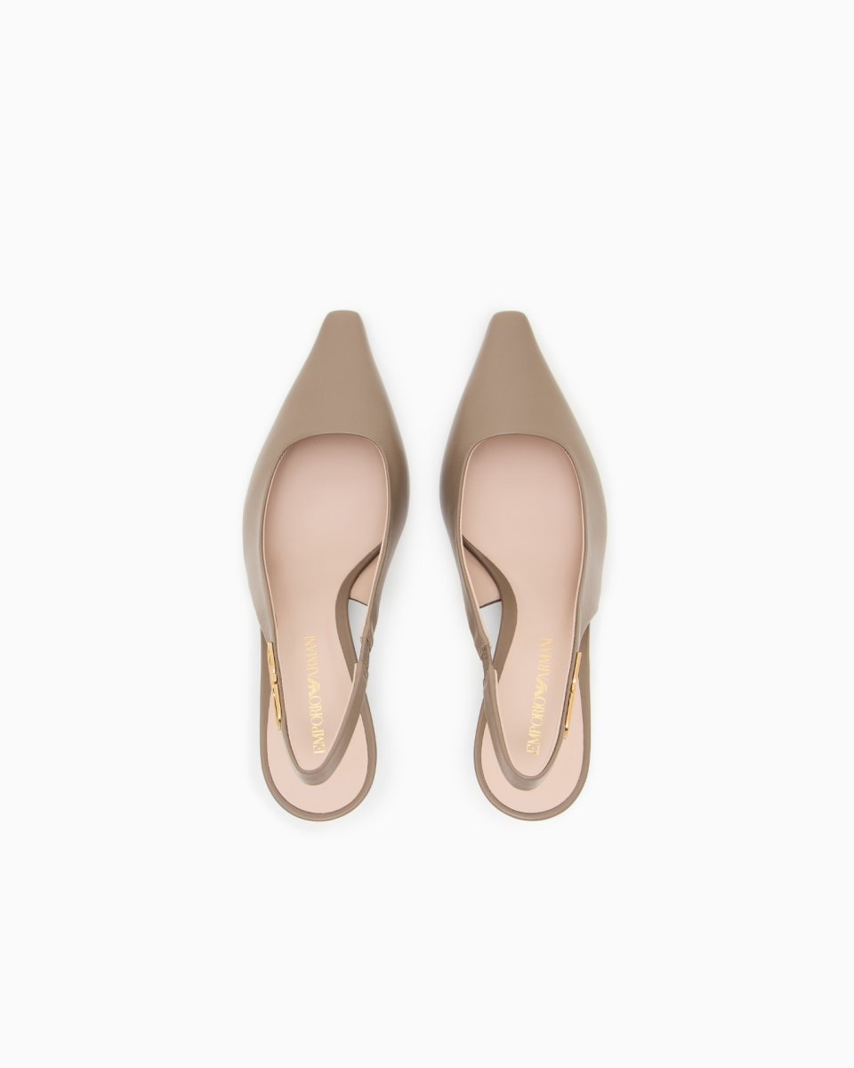 Slingback court shoes made of supple nappa leather, with a metal eagle logo. A selection of functional, versatile footwear made distinctive by the metal logo with the iconic eagle.