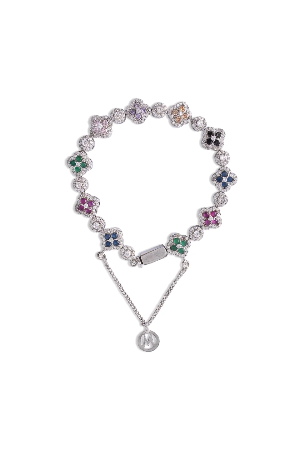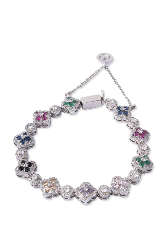 Inspired by nature, our Primrose Bracelet features delicate florets beautified with an artful amalgamation of glimmering multicolor zircons. It is perfect for adding sophistication to casual and festive looks.