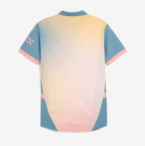 Back City as they look to smash even more records and retain their place at the top of world football with the PUMA Manchester City 24/25 Authentic Fourth Shirt With Packaging in Rosebay/Bold Blue, a stylish change shirt made in collaboration with famed City fan Noel Gallagher.