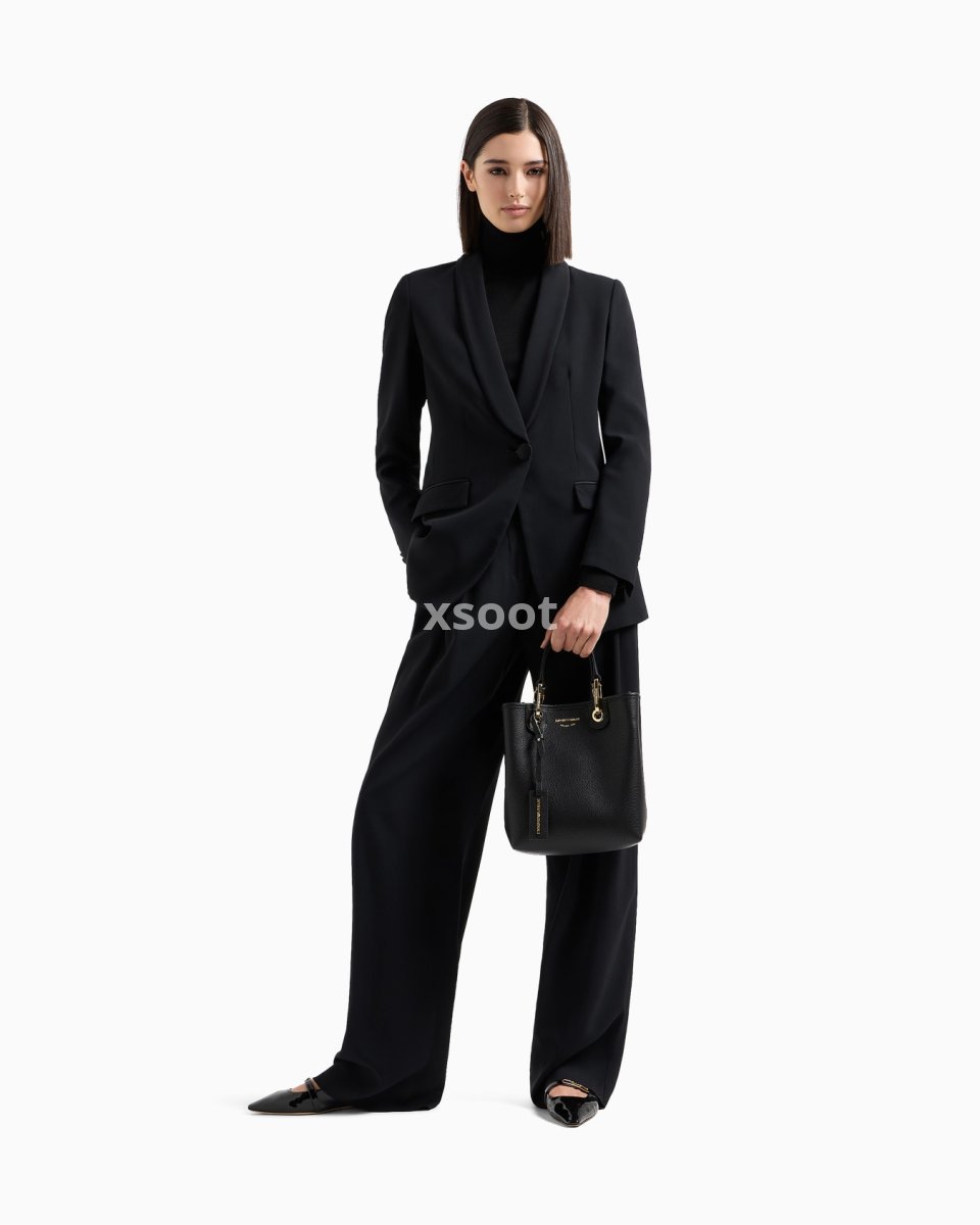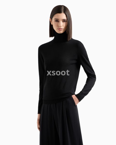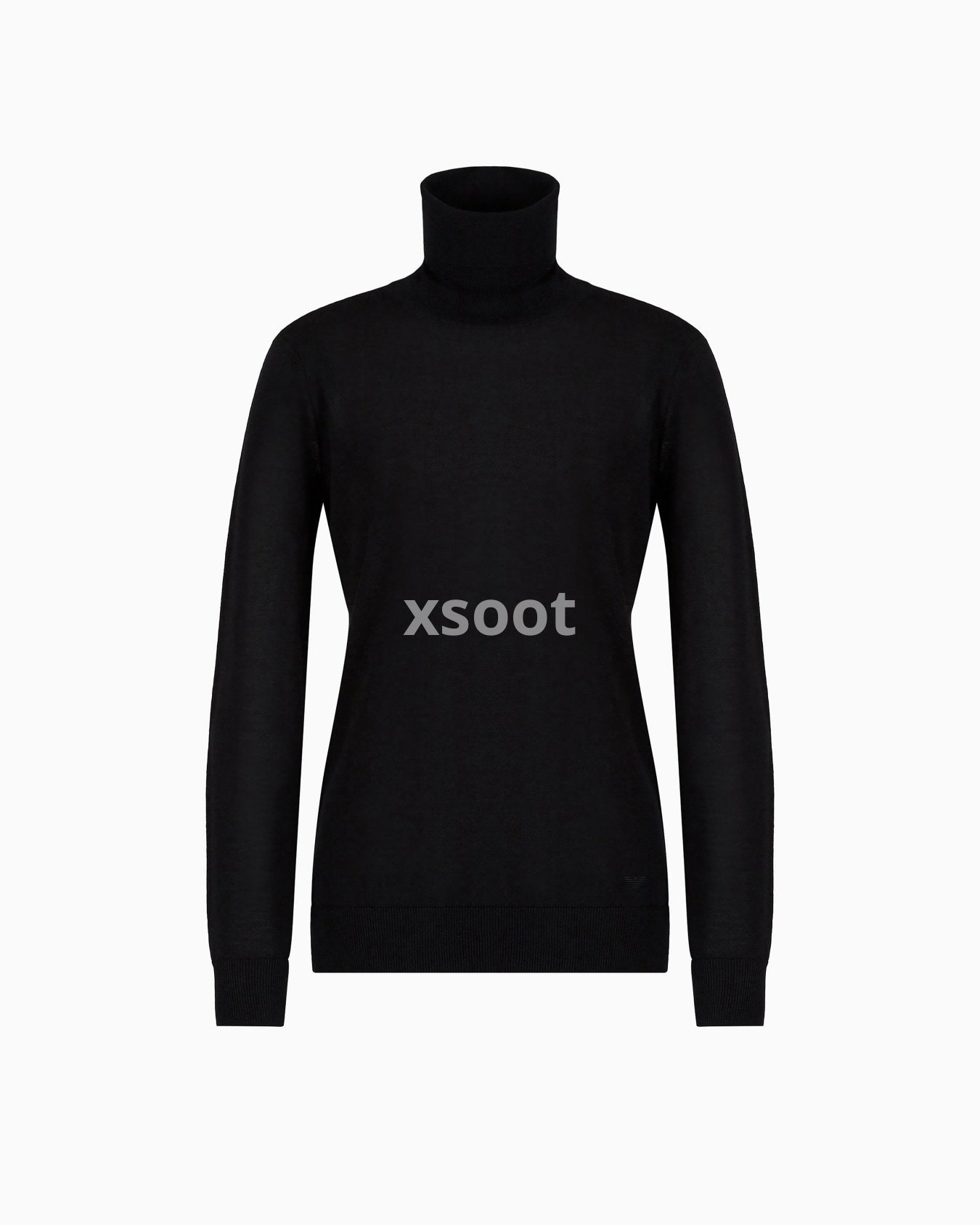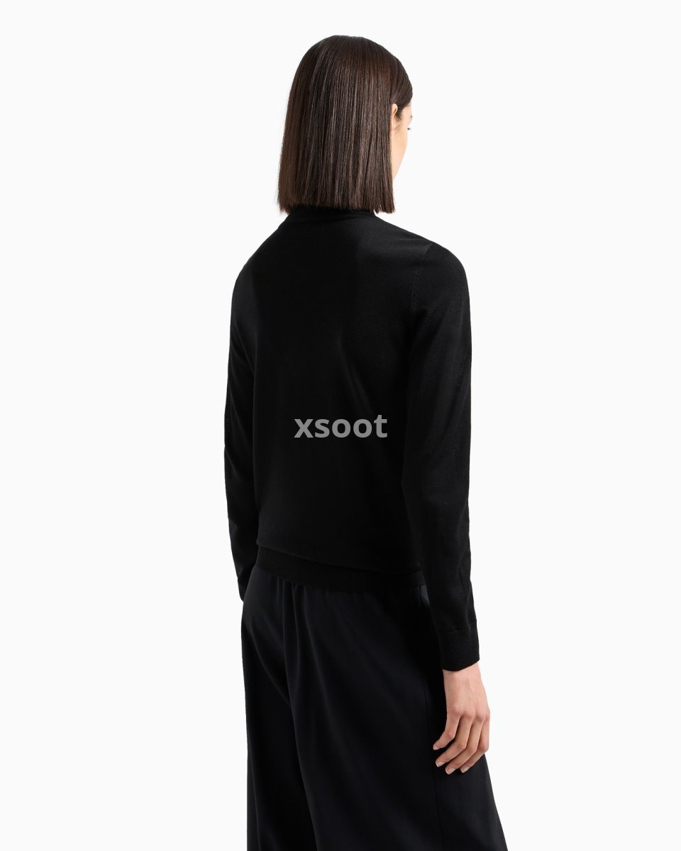 The Essentials selection makes a statement of enduring style: both elegant and practical, it lends itself to multiple combinations and to wearing on an array of occasions. The colour palette includes the brand’s characteristic neutral nuances, such as white, black and blue which, combined with a minimalist design, create a series of key pieces for the female wardrobe. One of these must-have staples is the classic, pure virgin-wool rollneck, as it can be worn anywhere in a wide array of outfits. Soft, plain-knit weave with ribbed trim. Colour-matched micro eagle embroidered on the left hem. Fineness: 14.