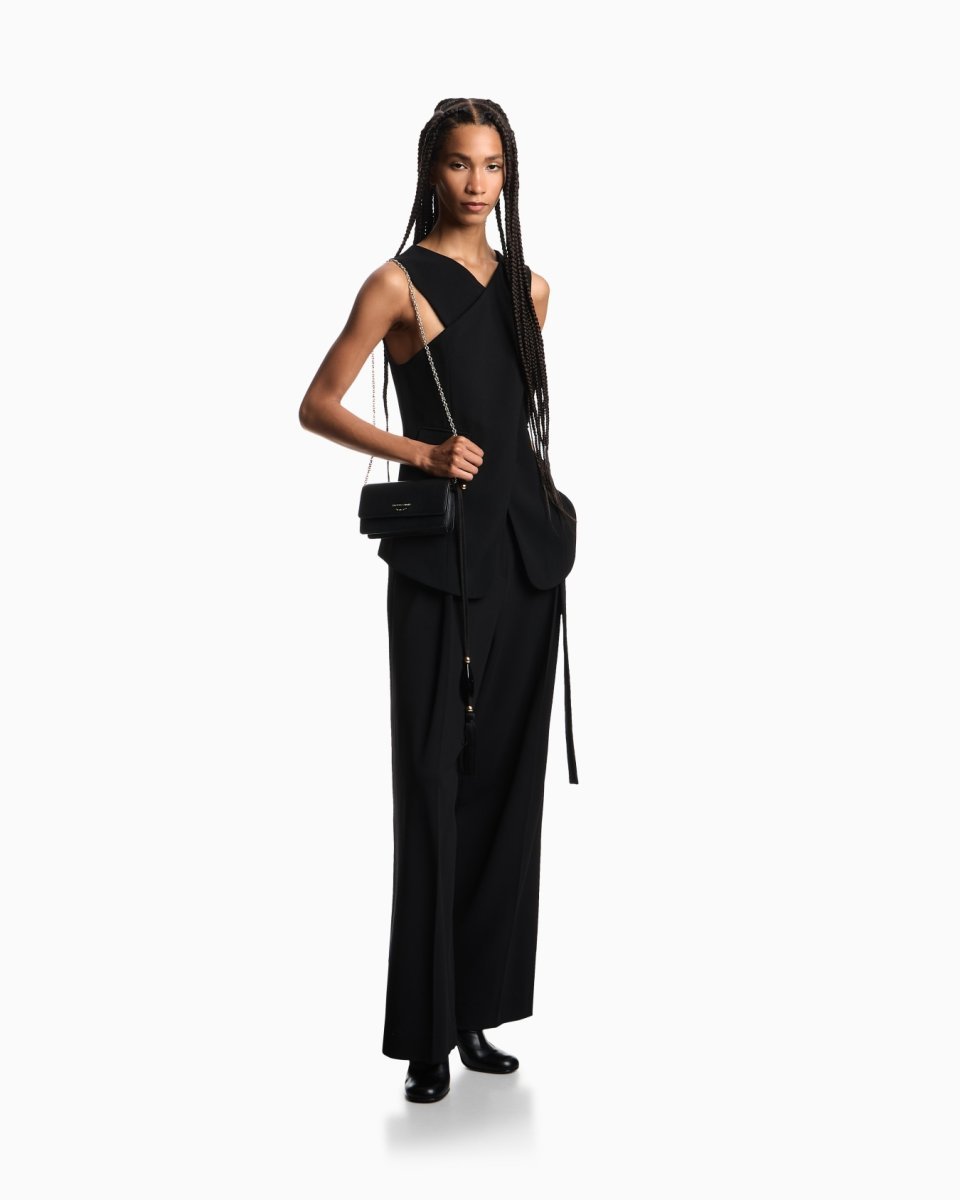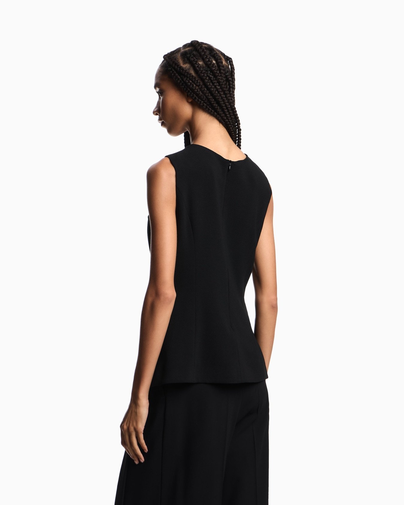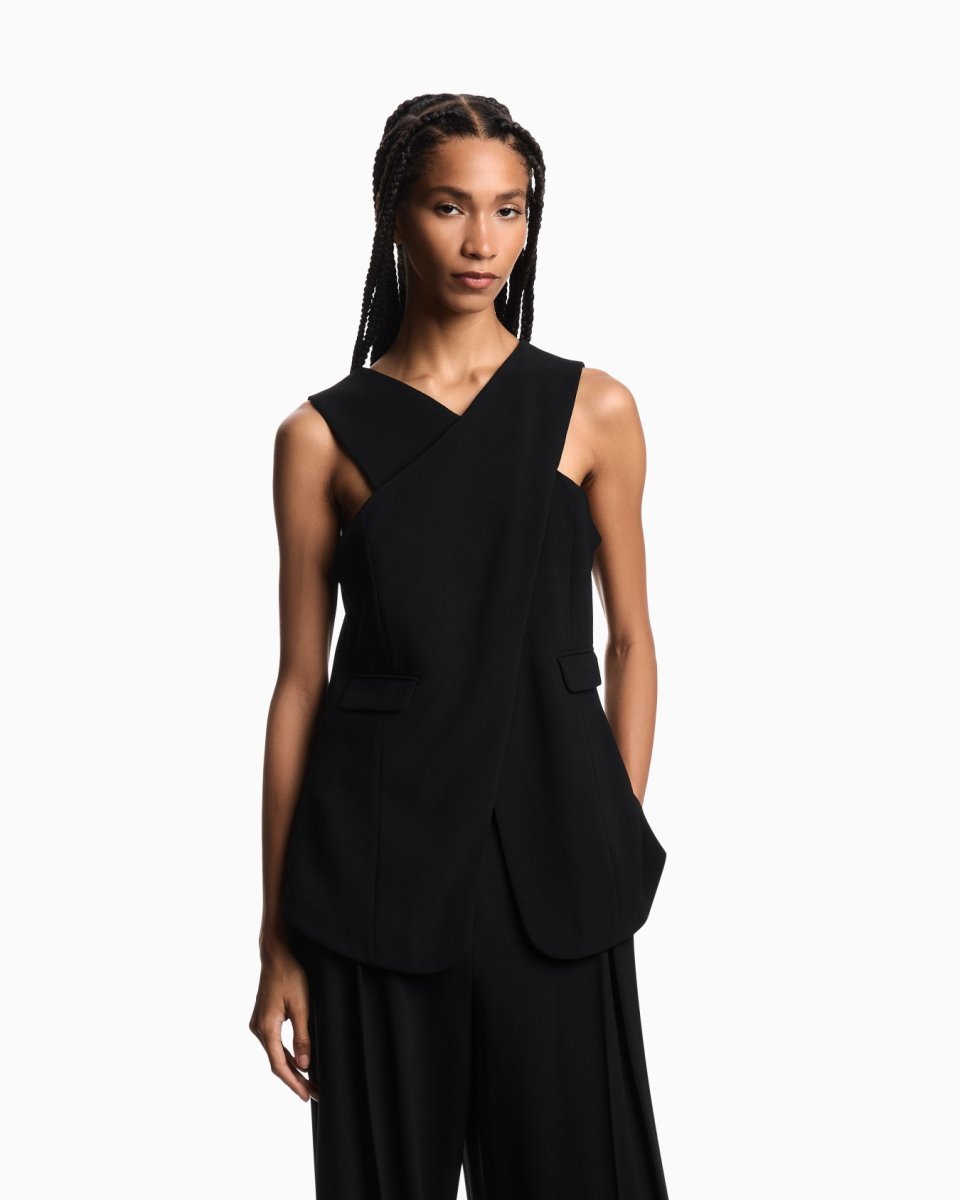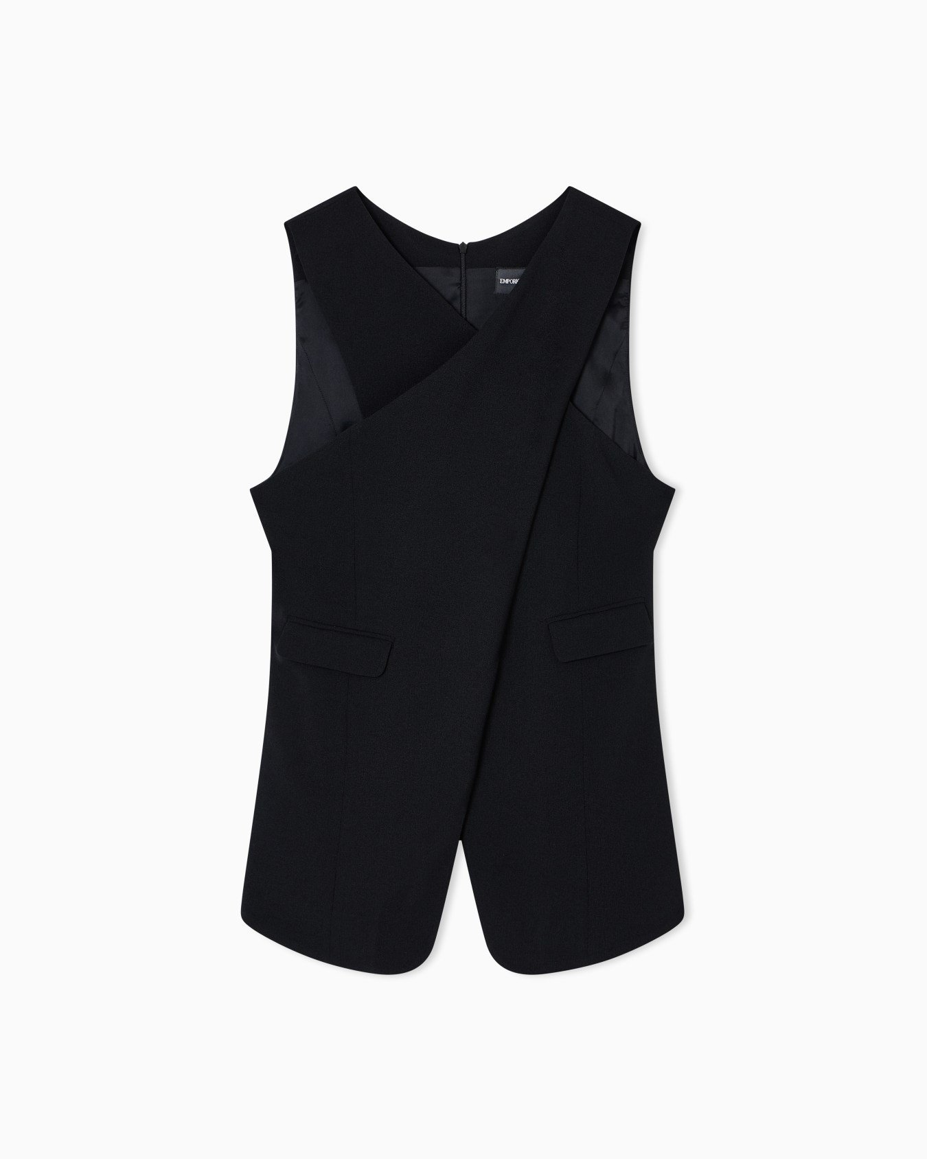 Sleeveless top made of a stretch sandblasted fabric; a cosy, sensual fabric that creates a piece designed to be worn day&night. The style is distinguished by a distinctive cross-over front that adds movement to the garment.