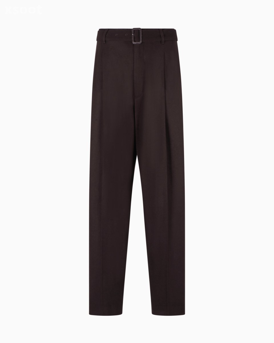 Trousers with front darts that create elegant deep pleats down the leg and handy zips that allow you to adjust the leg opening. The piece is made from a cosy virgin wool fabric with a small percentage of cashmere that makes it feel softer.