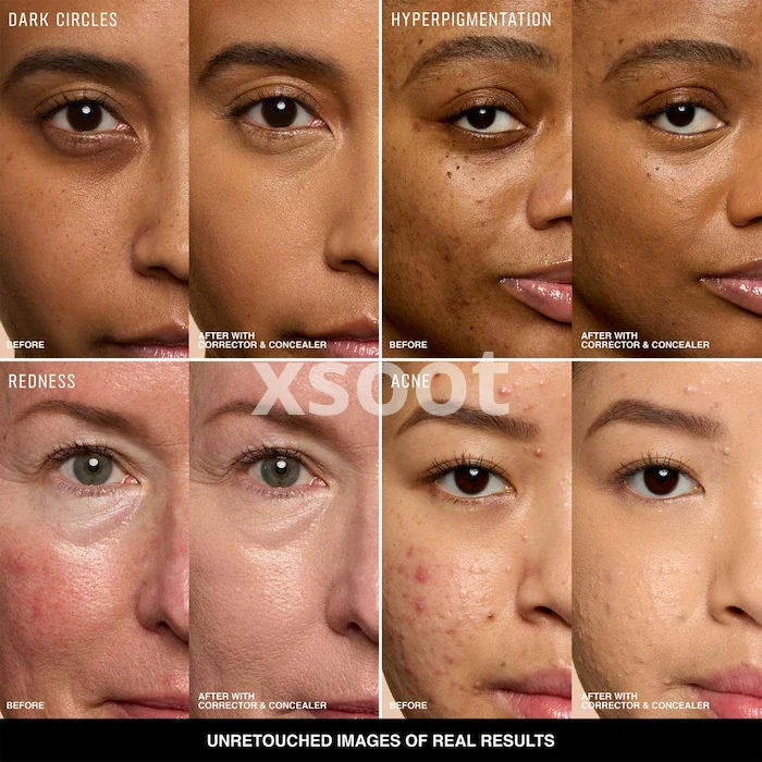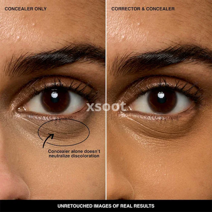 A full-coverage color corrector that neutralizes dark under-eye circles and other discoloration around the face for up to eight hours of coverage.