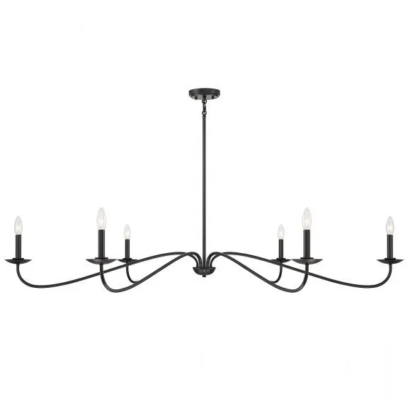 A confident re-do of a classic silhouette, this 6-light chandelier enlivens your living room with luxe style. It's crafted from iron in an elongated traditional design, with six scrolling metal arms extending from a central hub, each one topped with a candle-style sconce. Each sconce suits a candelabra bulb of up to 60W (sold separately), adding a bright, ambient glow with a refined quality to your entryway or living room. This chandelier hangs with the help of a height-adjustable down rod and a canopy that works with a sloped ceiling. Pair it with a dimmer switch for custom light levels.